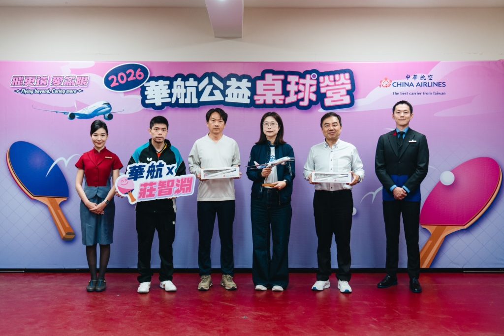 中華航空公益桌球營五日移師彰化舉行,華航邀請桌球教父莊智淵親臨指導,陪伴在地學童揮拍學習,以運動為新的一年注入正向能量,也為孩子們種下勇敢追夢的希望,藉由公益行動揭開熱血序幕。