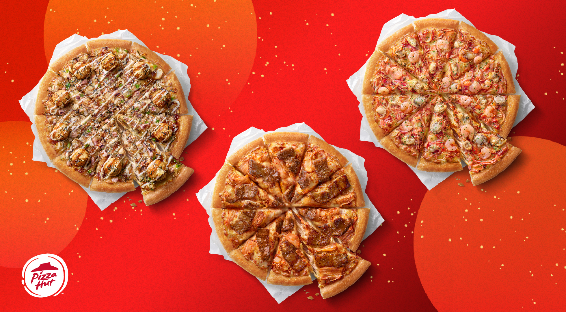 「丸勝日式章魚燒」、「經典海鮮四重奏」、「韓式泡菜豬五花」三款經典口味在食材上全面升級,即日起全台門市開賣;全新「千島海鮮盛宴」與「超級夏威夷」也延續熱銷好評,成為常駐口味讓饕客隨時開吃。同時,必勝客原版「夏威夷比薩」將持續販售,讓經典控與肉食派都能依喜好安心點選!