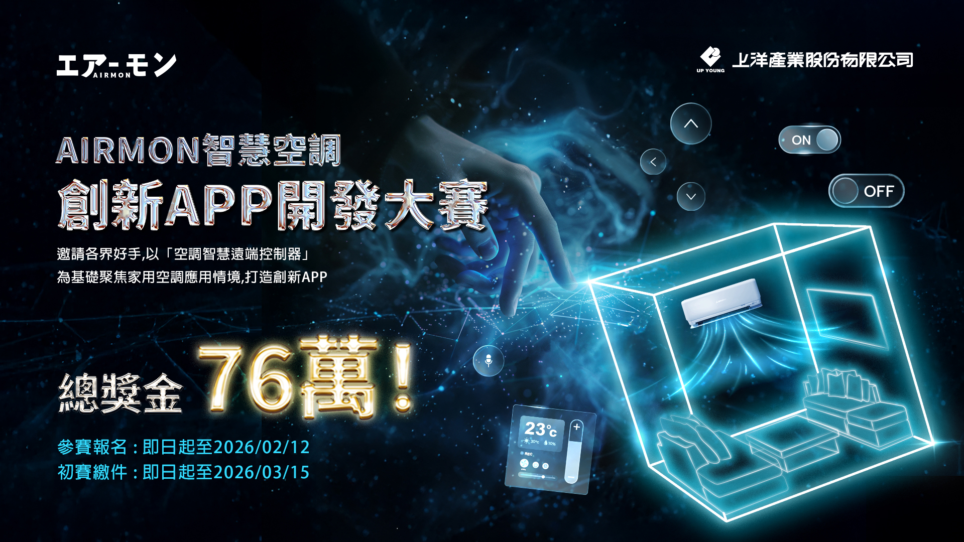 因應智慧家庭與居家生活品質需求持續提升,上洋產業攜手三菱重工空調,首度舉辦「2026 AIRMON 智慧空調創新 APP 開發大賽」,即日起開放報名至 2026 年 2 月 12 日,總獎金高達 76 萬元。三菱重工空調以 JETFLOW 環流溫控與專利靜音技術,提供穩定高效的硬體基礎,透過開放競賽激發跨域創意,打造貼近消費者需求的家用空調遠端控制 APP,拓展智慧家庭的更多想像。
