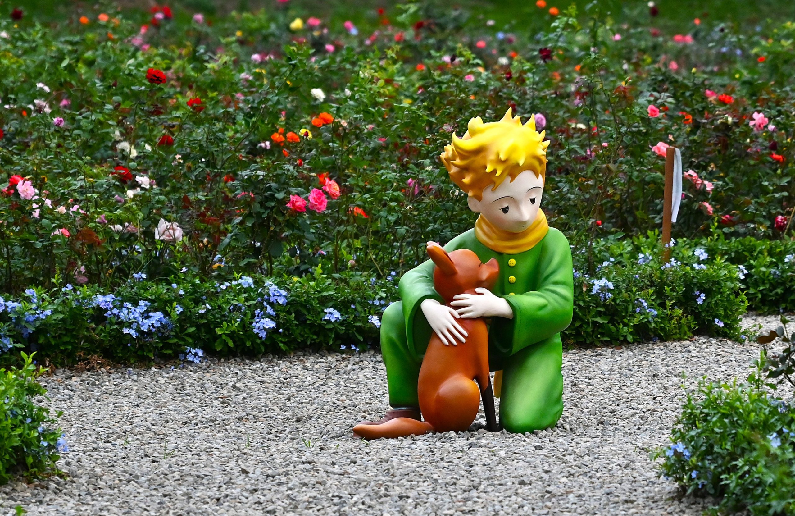 想像十月時玫瑰都長到一百至一百二十公分,一大片一大片,組合成兩朵超大玫瑰,大朵獻給小王子,小朵獻給東海,碎石子鋪成的小路,窄到身體被花刺刮到,而兩萬朵花香撲鼻而來,那應該是盛大且致命的香吧!成螺旋狀的花徑,要繞個兩圈才到花心處,那裏坐著小王子與狐狸的雕像,這不只是玫瑰園,而是小王子的平行秘密宇宙。