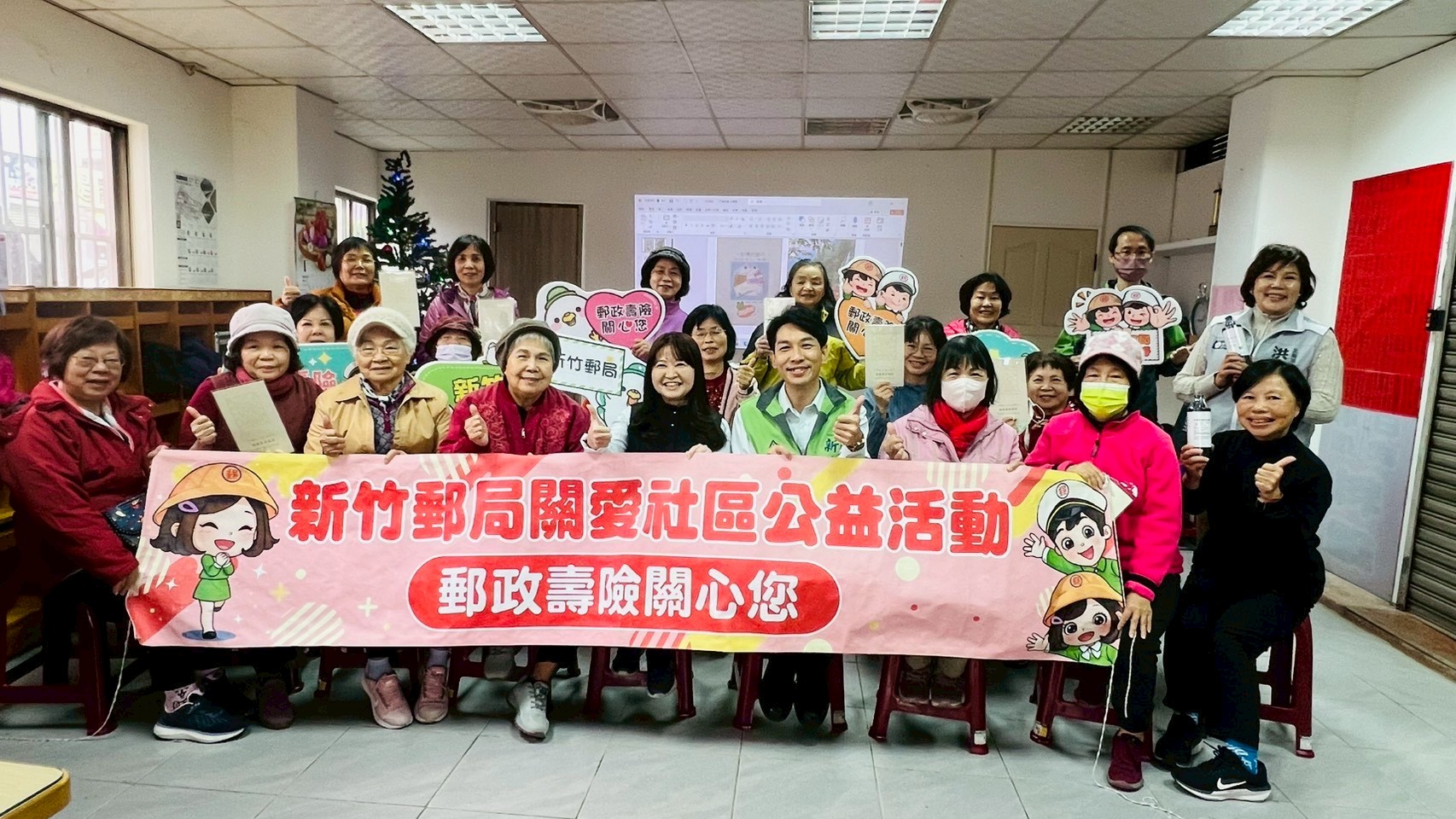 因應超高齡社會來臨及善盡企業社會責任,新竹郵局今年開春在竹北市北崙社區發展協會開設樂齡集郵社團,六日首上課,新竹郵局主管特到場致意,對於長輩們在寒風中仍出門學習的精神,致上最高敬意。