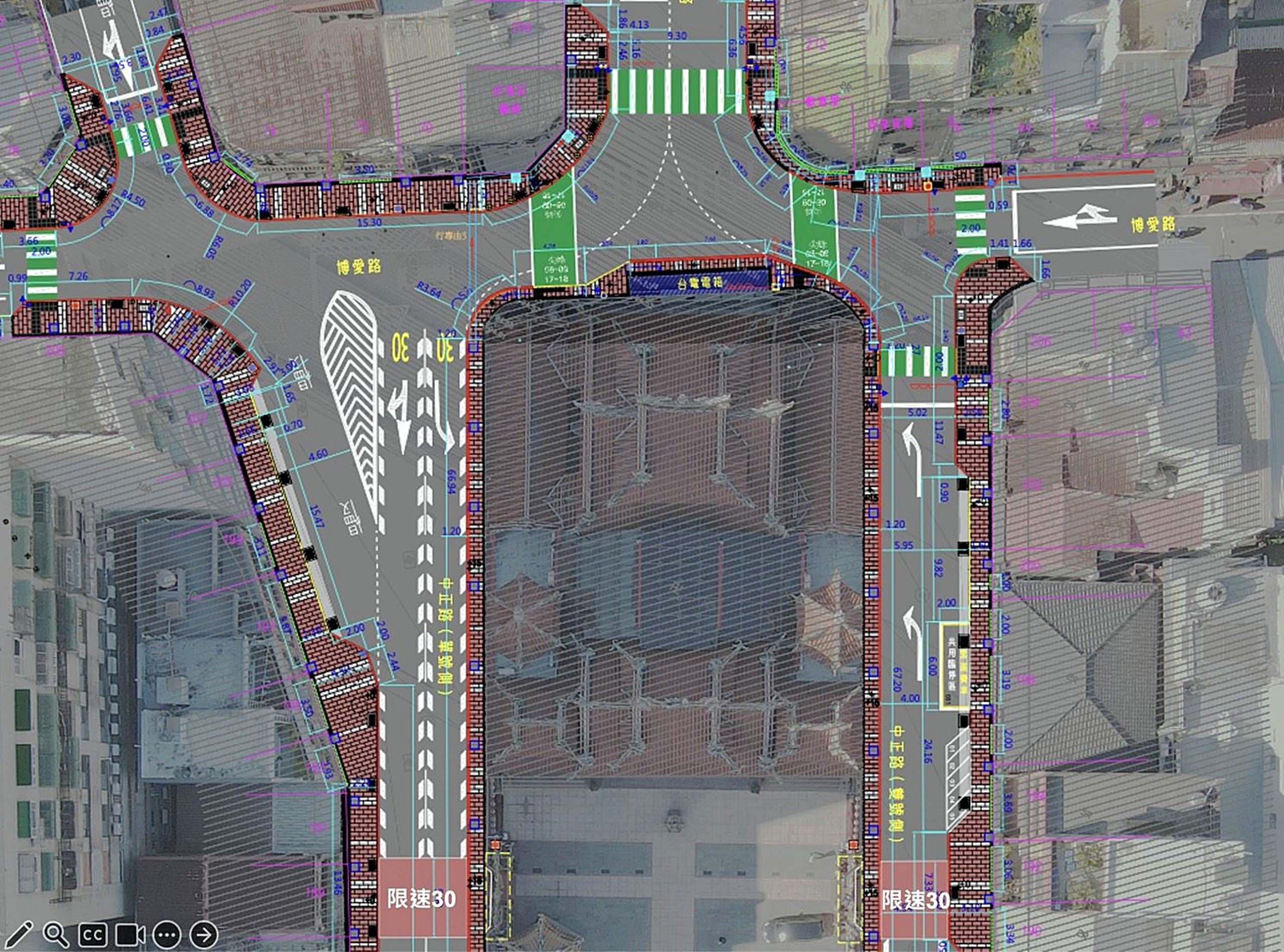 針對民眾反映桃園大廟景福宮兩側紅色鋪面警示減速路段,易誤導為行人穿越道,導致違規受罰之爭議,桃園市政府都市發展局與交通局立刻滾動檢討,紅色鋪面段將增設「限速三十」標示,景福宮後側的中正路、博愛路口將搭配既有行人專用時相再優化行人穿越道線,進一步提升行人安全與通行便利性。