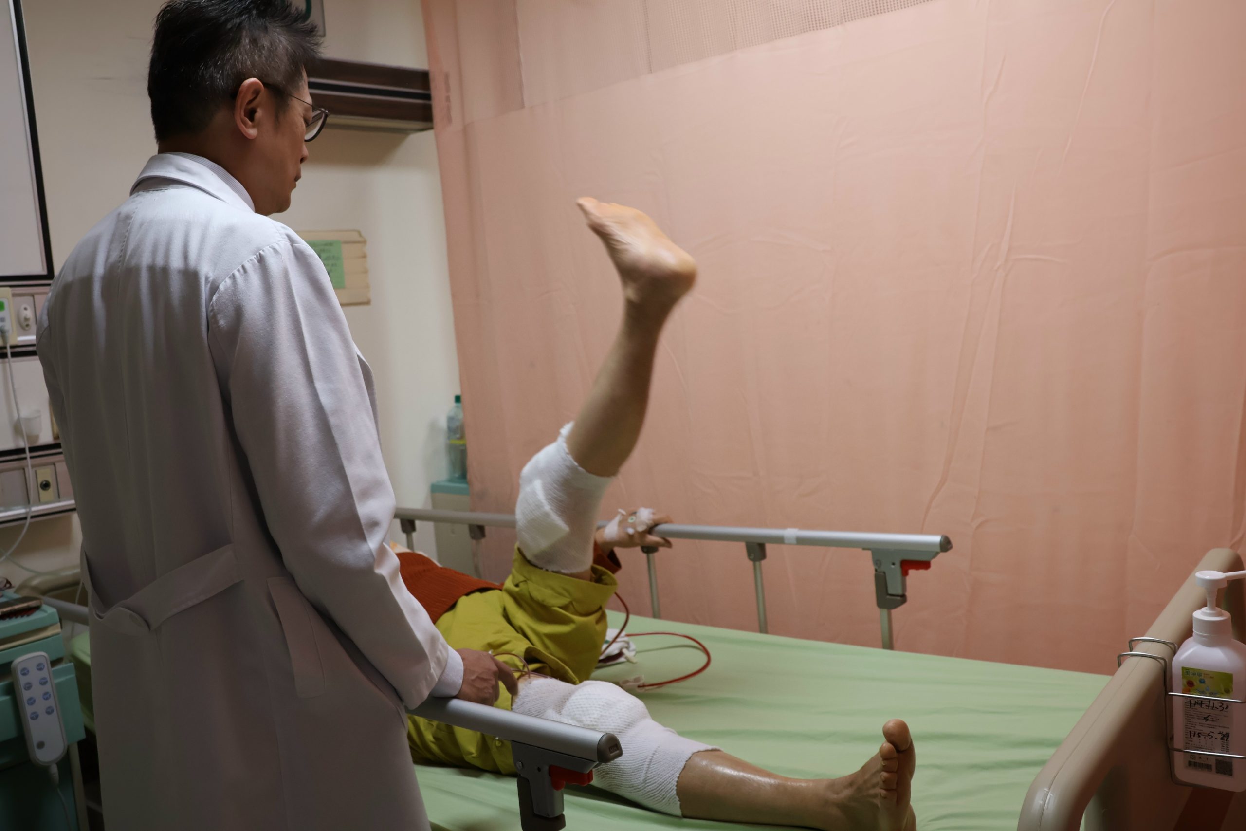 一名60多歲婦人去年車禍,住加護病房10多天歷經生死關卡,原本雙腳退化性關節炎痛到根本無法行走,再加上脊椎滑脫的舊疾,疼痛感加劇,不斷復健、拉腰治療,但改善症狀有限,小孩找她出遊,每次皆以行動不便拒絕,在小孩鼓勵下,她決定開刀置換人工膝蓋,一次還開雙膝,術後積極復健,希望在農曆春節假期,全家人可以一起出遊圓夢。