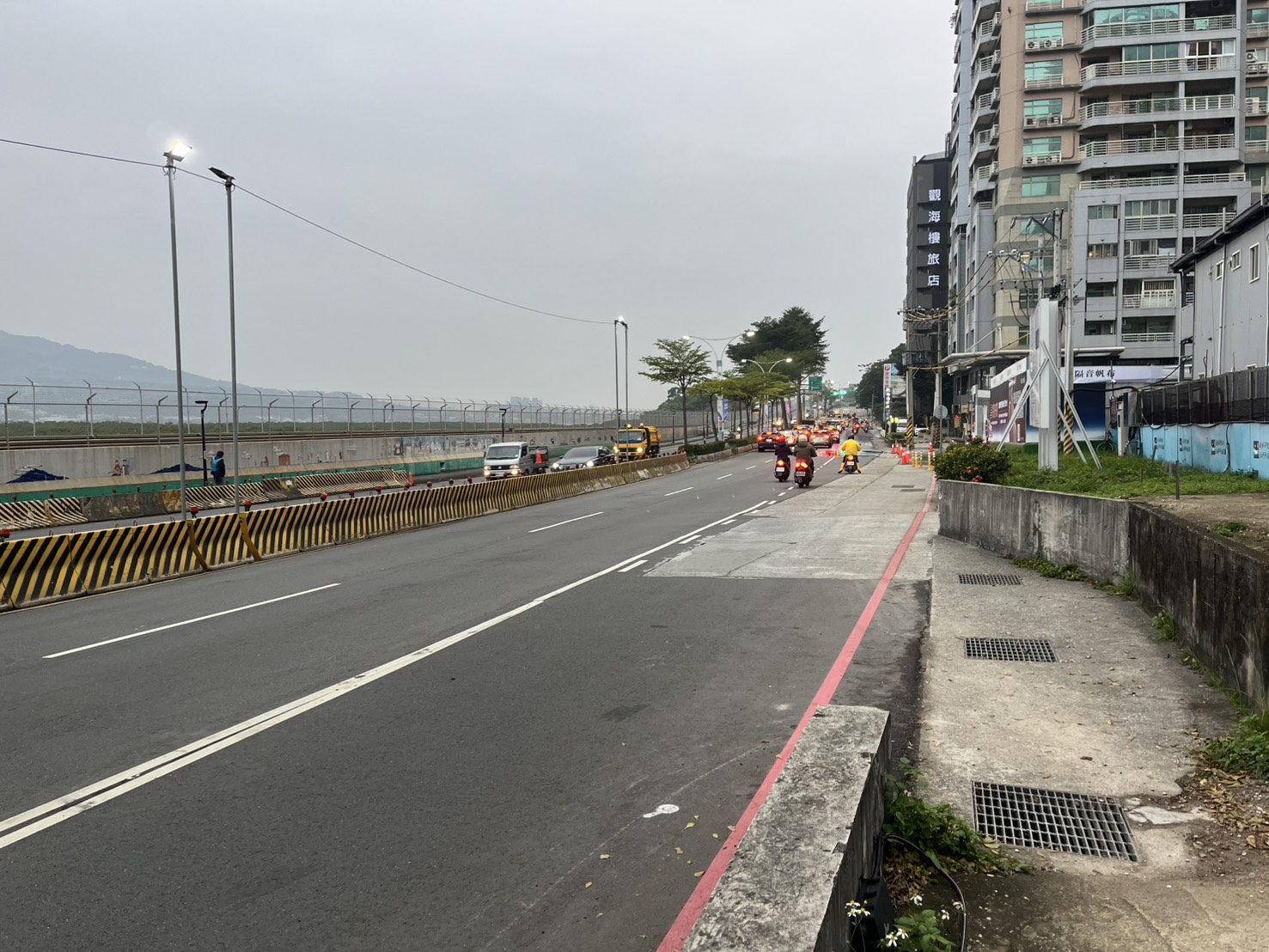 工務局長馮兆麟表示,淡北道路積極推動各工區施工進度,除了淡金路高架橋外,關渡大橋匝道內的主線高架橋正在組裝懸臂工法工作車,臺北市工區也正在進行交維調整與管線遷移工作,整體工程預計於118年完工,通車後可紓解台2線竹圍-紅樹林路廊交通瓶頸,縮短淡水往返台北市的交通時間,提升居民生活便利性。