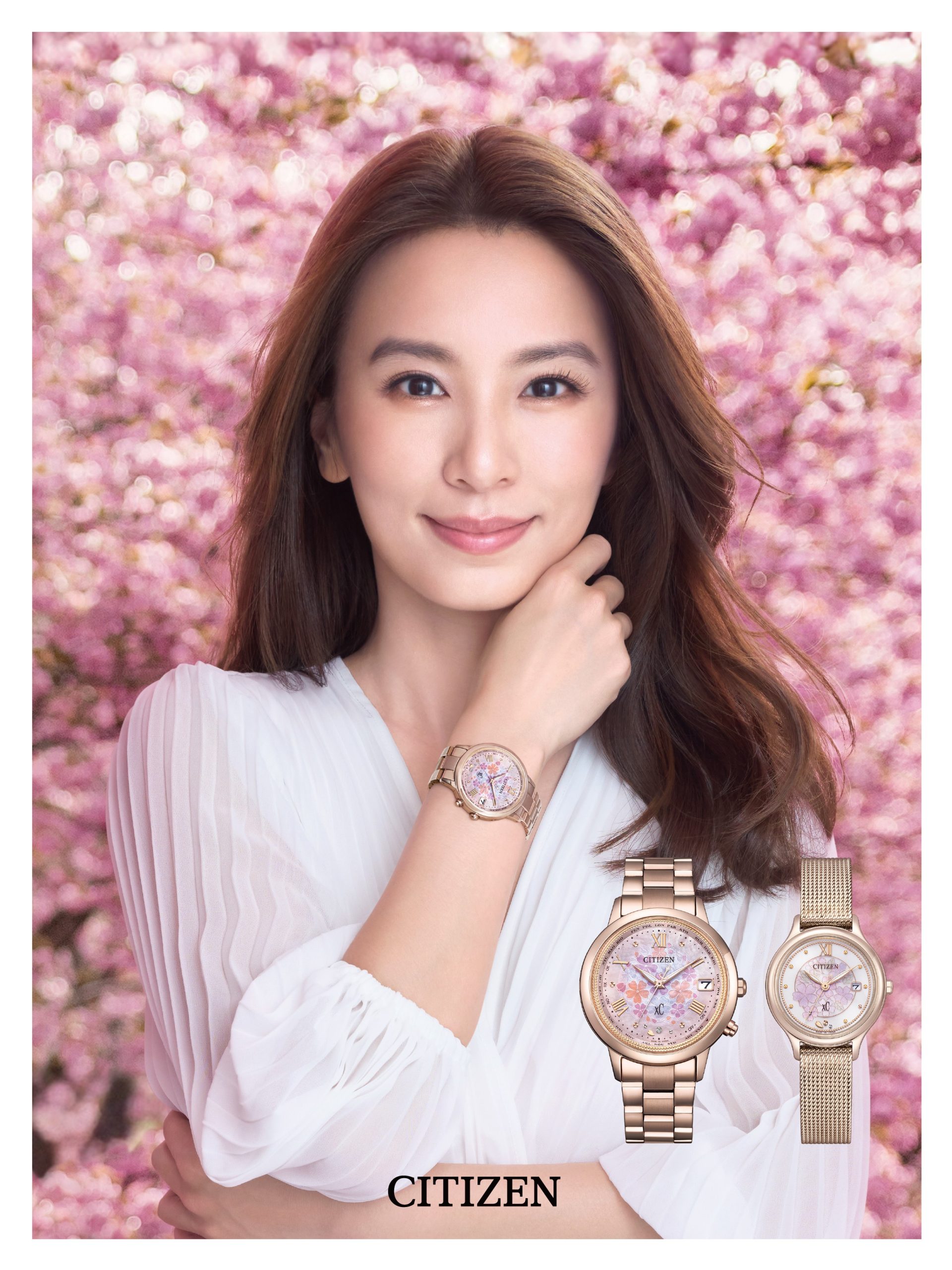 CITIZEN女錶代言人田馥甄配戴「花曜日」台灣限定款CB1135-52N,祝福女性每天都如花般綻放自信。