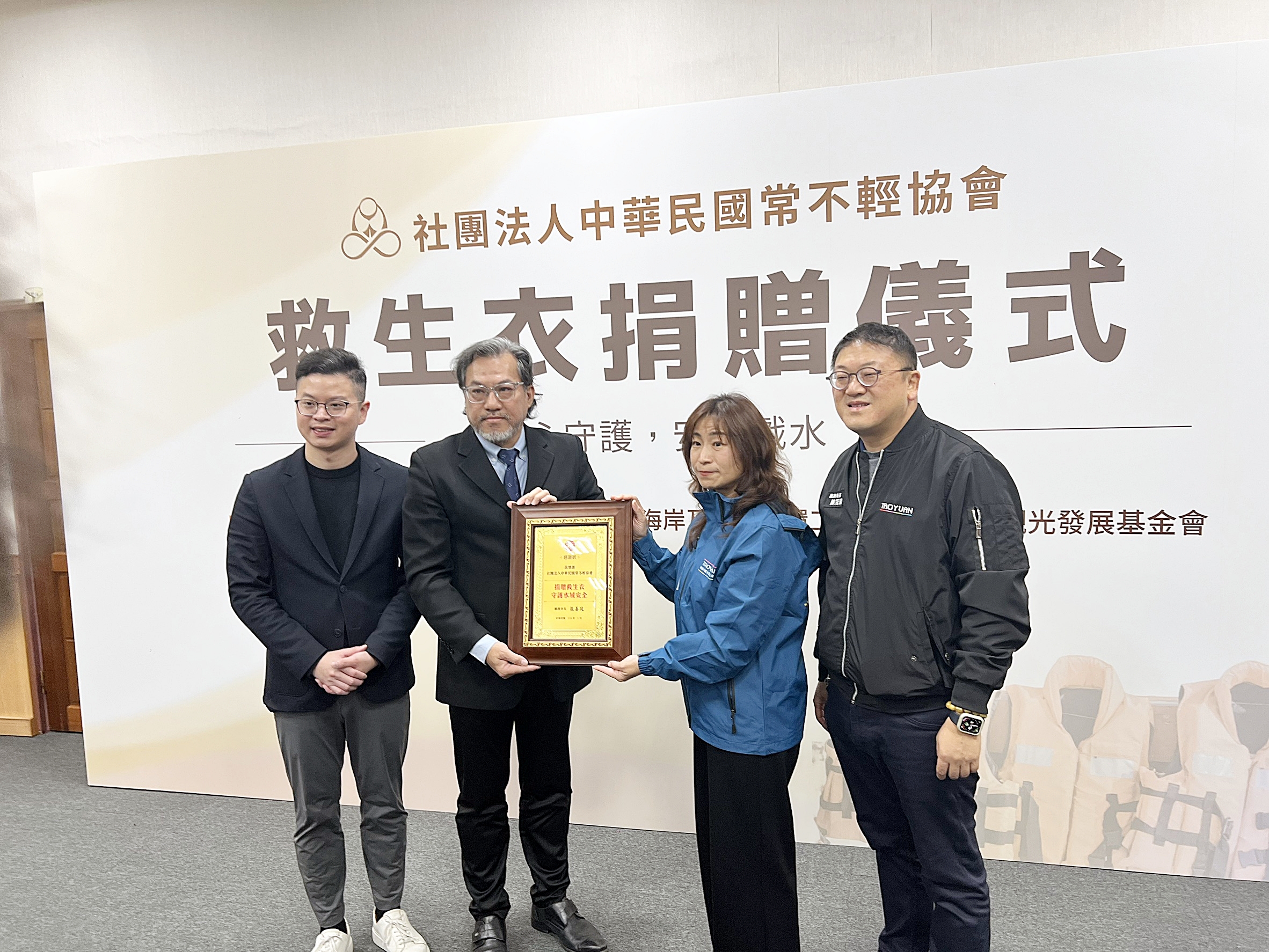 為持續提升桃園市水域觀光安全,桃園市觀光發展基金會六日參與「救生衣捐贈儀式」,接受中華民國常不輕協會捐贈的三百件救生衣。