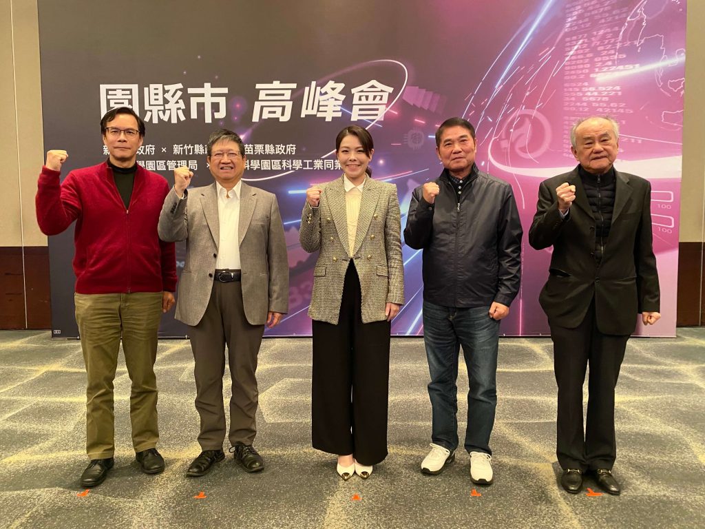 新竹市長高虹安、新竹縣長楊文科、苗栗縣長鍾東錦、新竹科學園區管理局長胡世民,以及新竹科學工業園區同業公會理事長、李金恭共同主持,這也是高虹安復職後首度與會。