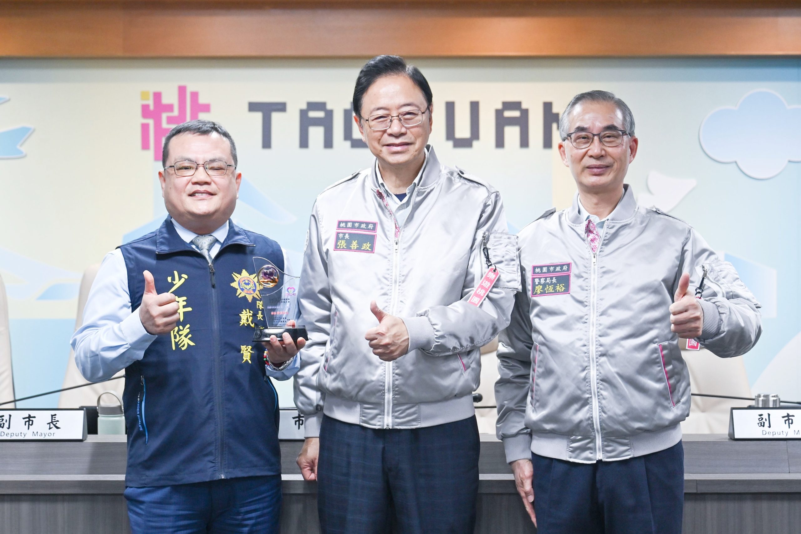 桃園市長張善政七日上午主持市政會議,接受警察局少年警察隊呈獻榮獲教育部國教署「一一四年度全國中輟生預防及復學輔導工作」績優行政機關獎座。張善政表示,中輟防治不僅是讓學生形式上重返校園,更是市府支持網絡的共同責任;市府將秉持「一個都不能少」的理念,整合教育、警政及社會資源,強化陪伴與支持機制,確保每位孩子都能在愛與關懷中學習與成長。