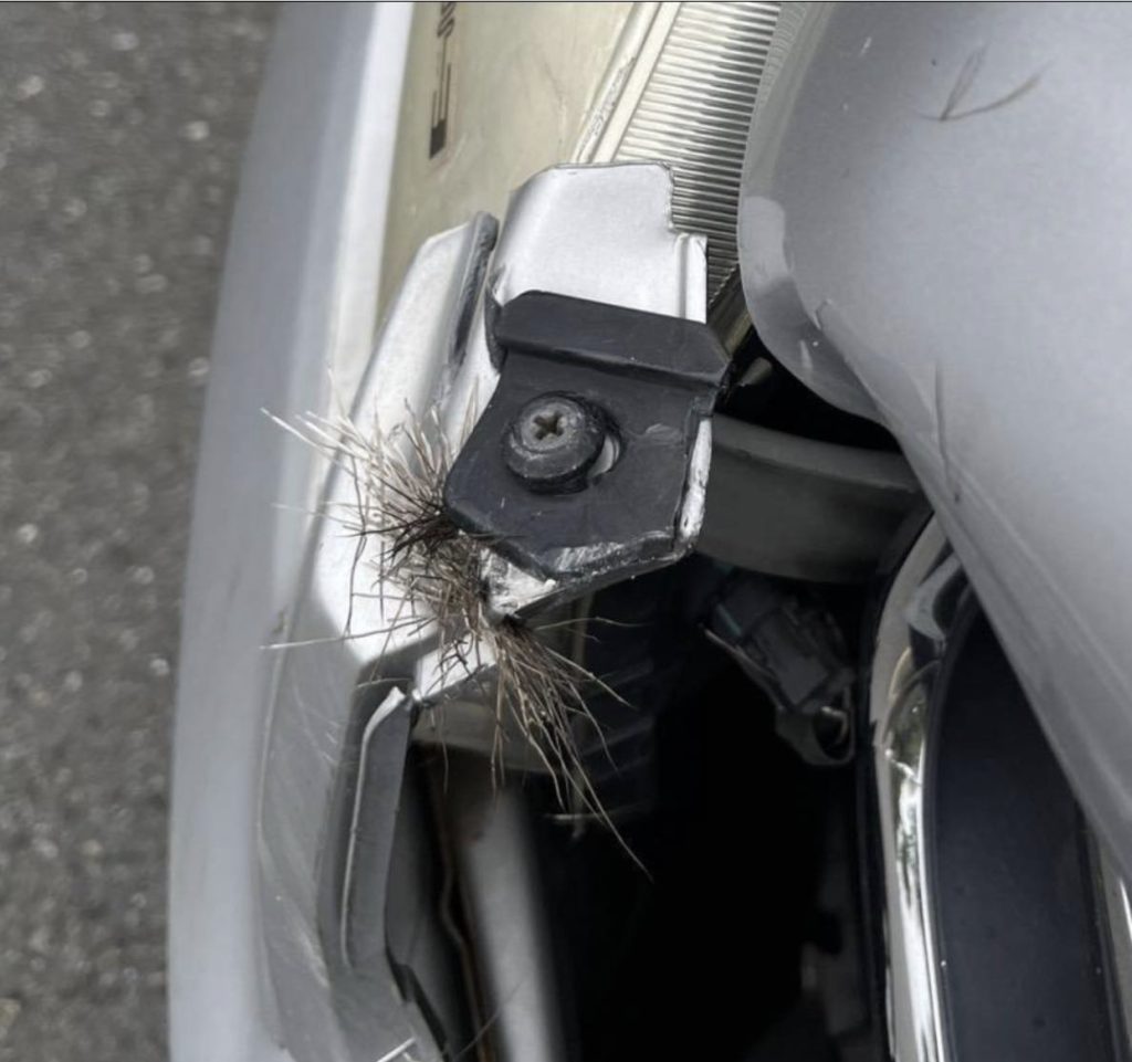 有民眾六日開車行經台七十四甲線東外環道時,突然衝出一隻水鹿撞上轎車;水鹿雖翻滾倒地,但幾秒後起身走入山區。駕駛所幸無大礙,但轎車車頭凹陷,只能自行負擔損失。