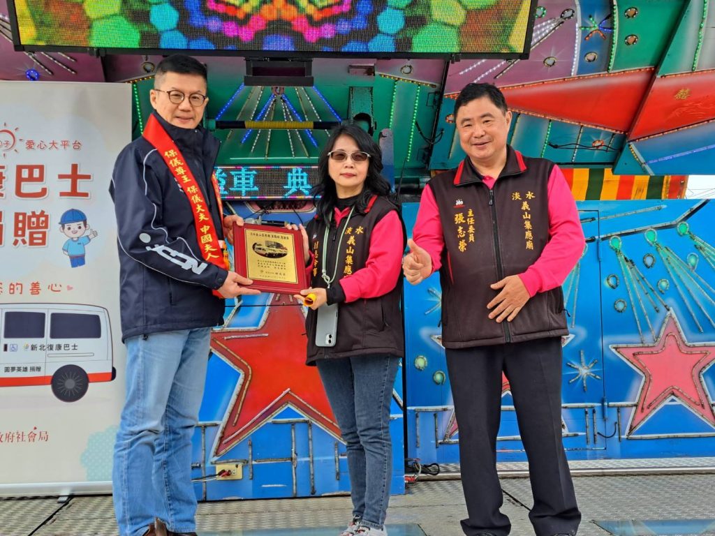 張其強表示,義山集應廟是淡水及鄰近地區的信仰中心,長期投入公益,每年信眾中元普渡的供品,也都會分送鄰里弱勢家庭及獨居長者。其中志工詹淑媚,在97年就曾以廟方名義捐贈1輛救護車給馬偕醫院,110年、112年、113年陸續捐贈新北市復康巴士,這次捐贈第4輛,仍以集應廟名義,並感念父親詹聰明、母親詹謝雪的養育之恩,古人有言,積善之家必有餘慶,大孝顯親,詹淑媚的孝心和大愛精神令人敬佩。