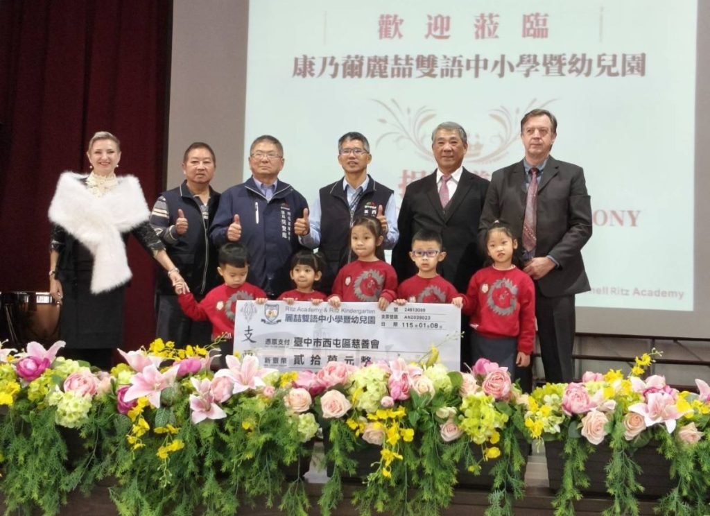 麗喆雙語中小學暨幼兒園秉持「人飢己飢、人溺己溺」的關懷精神,長期投入公益行動,除固定捐助台中市西屯區慈善會急難救助專戶,並持續發揚對弱勢學生的關懷精神,捐贈博幼基金會外,同時關懷鄰近學校,提供福科國中與國安國小作為學生獎助學金之用。今年更進一步擴大捐贈範圍,將愛心延伸至大雅、后里、豐原、外埔等地中小學,作為該校特殊學生獎助學金,協助孩子安心向學。除此之外,亦關懷極度需要協助的族群,捐助向上社會福利基金會,將善款送達院內院童,傳遞溫暖與希望。其餘善款則全數捐助學校周邊17個里之清寒及身心障礙居民,充分展現麗喆親師生共同關懷在地及回饋社會的博愛精神。
