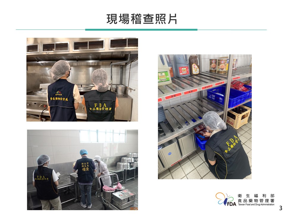 食藥署表示,專案是針對全國國中、小學之自設廚房作業環境、從業人員衛生、製備流程、食材效期、豬肉原產地標示等項目進行查核,並抽驗午餐成品及半成品。