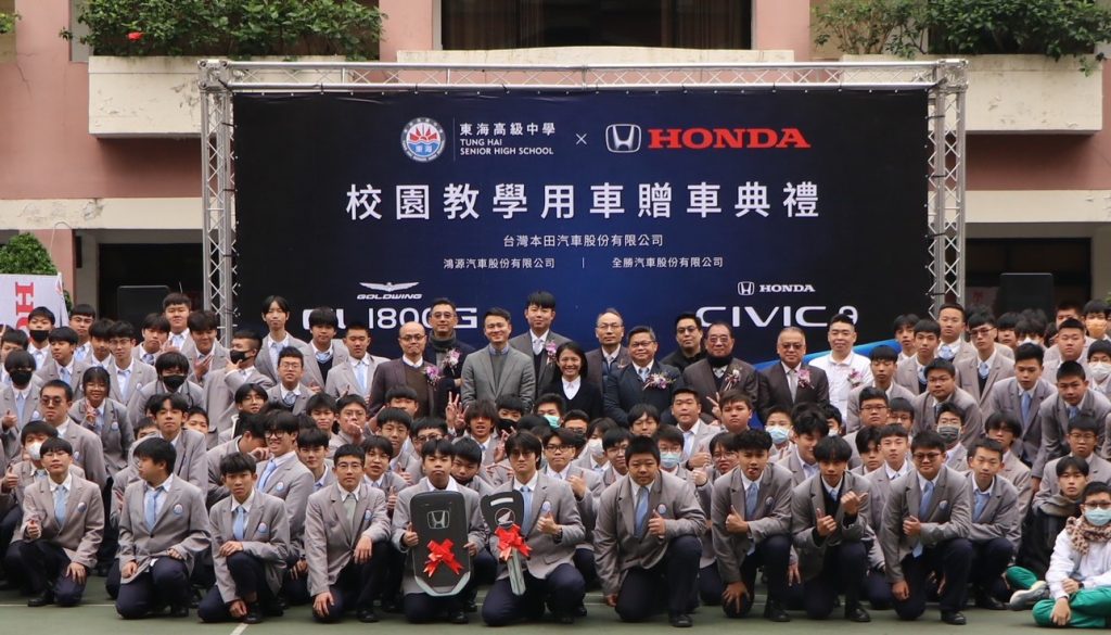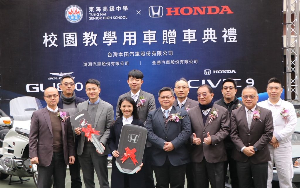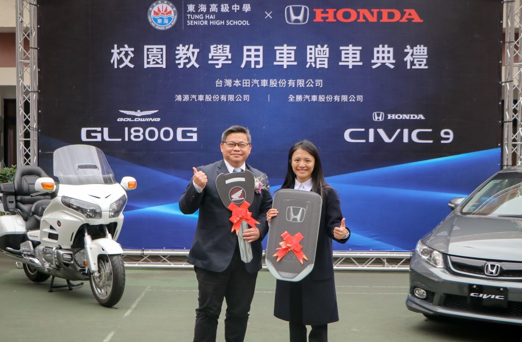 台灣本田汽車股份有限公司,攜手其經銷夥伴鴻源汽車、全勝汽車公司,共同致力產學合作,8日捐贈一輛經典車款Honda Civic 9轎車與一輛GL1800G重機車,助力東海高中汽車科教學升級,強化技職教育的實務訓練,產業與學校資源共享,更體現產業界對人才培育的努力。