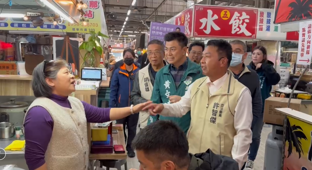許智傑前往左營區龍華市場及自由黃昏市場拜託支持,左楠選區議員黃文志力挺陪同,受到攤商及採買民眾熱烈歡迎。