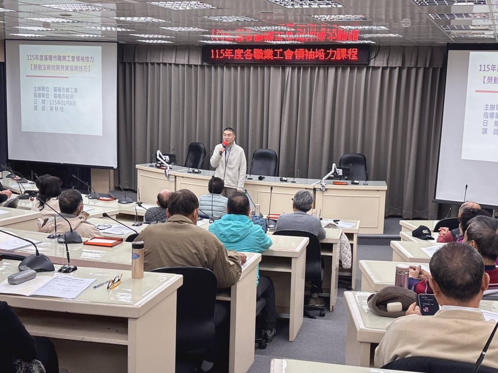 基隆市總工會為強化轄屬各職業工會幹部之專業素養與領導能力,於八日辦理「基隆市職業工會領袖培力課程-勞動法新知與勞資協商技巧」。謝國樑親自參與,聚焦於「勞動法新知」與「勞資協商技巧」兩大主軸,總計四十人參加,內容兼顧理論與實務,期能全面提升工會領袖之專業能量。