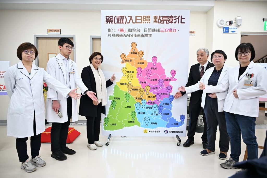 彰化縣藥師公會九日於鹿港鎮衛生所舉辦「藥(耀)入日照,點亮彰化」記者會,縣長王惠美表示,彰化縣率全國之先,導入專業藥師進入日照中心,補足用藥管理關鍵缺口,透過跨單位及公私協力方式,採先行試辦、滾動修正,建立可複製且可推廣的照護制度,降低用藥風險並強化復能成效,落實高齡友善與全人照護政策。