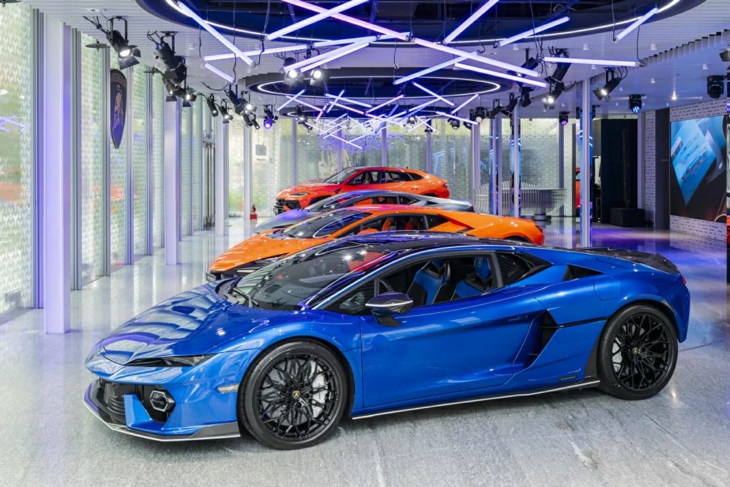 Lamborghini Revuelto:作為品牌首款V12 HPEV(High Performance Electrified Vehicle)高性能混合動力超級跑車,採用全新碳纖維車架概念,結合前瞻設計語彙與高度優化的空氣力學效率,並搭載嶄新的動力架構,重新定義性能、操控表現與駕馭體驗的標竿。