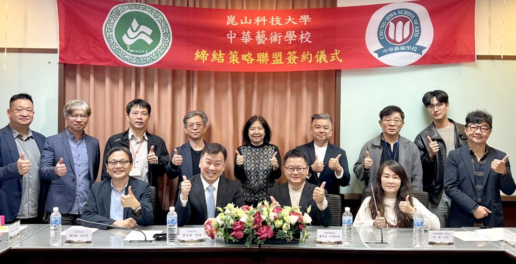 為深化技職教育與藝術教育跨域合作,崑山科大與中華藝術學校簽署策略聯盟合作協議,透過建立教育夥伴關係,強化雙方在課程銜接、教學資源、師資交流及學生升學輔導等面向合作,共同培育兼具專業技能與藝術創意的優秀人才,攜手開創多元發展的新契機。