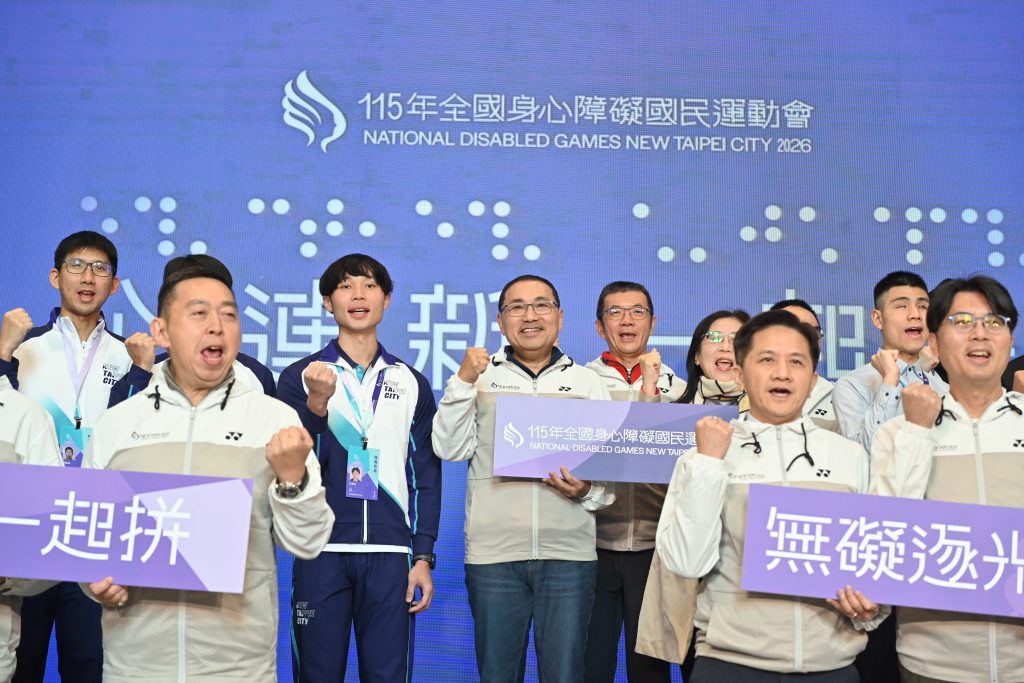 侯友宜說,本屆全國身心障礙國民運動會由新北市承辦,賽事主視覺標語「心連新 一起拼」代表著運動會的精神,「心」象徵溫度與熱情、「連」代表團結、「新」則呼應新北的創新活力,而「拼」則蘊含雙重意涵,同時代表運動員拼搏不懈的精神,以及在新北的人們彼此攜手團結。