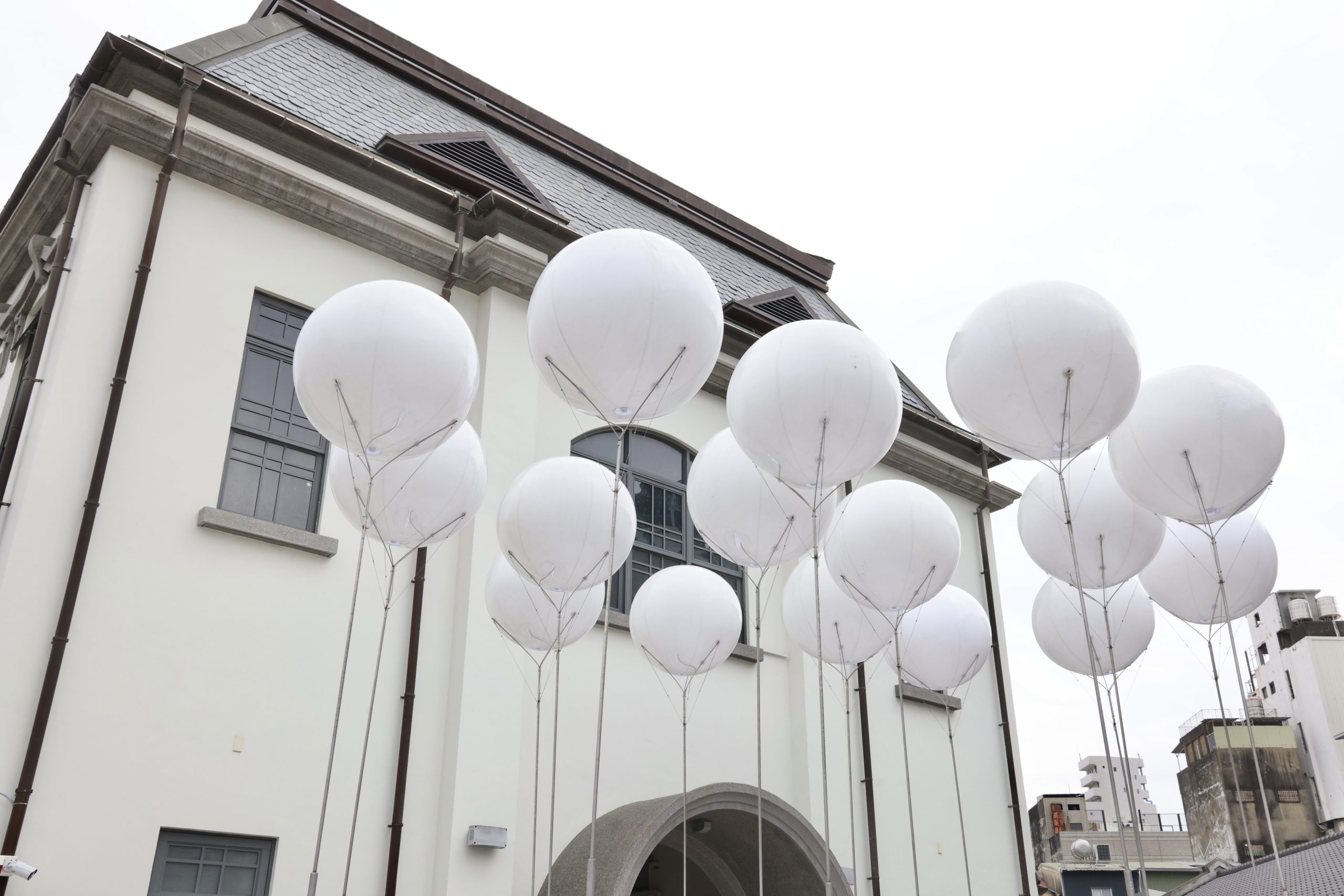 《一首天空的歌》主體由十六顆以氣壓機構維持懸浮的氣球組成,遠看就像是一簇飄在空中的雲,內建聲響與光源系統,當觀眾靠近拉動,氣球緩緩下降、發光,發出屬於天空的雷鳴、鳥啼、風穿枝葉的顫動、飛機掠空而過的各種聲響,當放手,又輕盈升空,透過氣球、聲音與光影,和天空即興合奏。