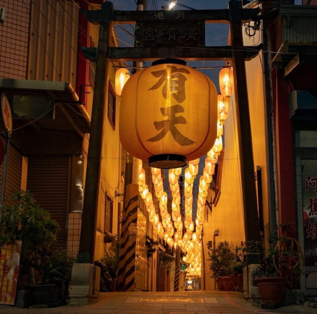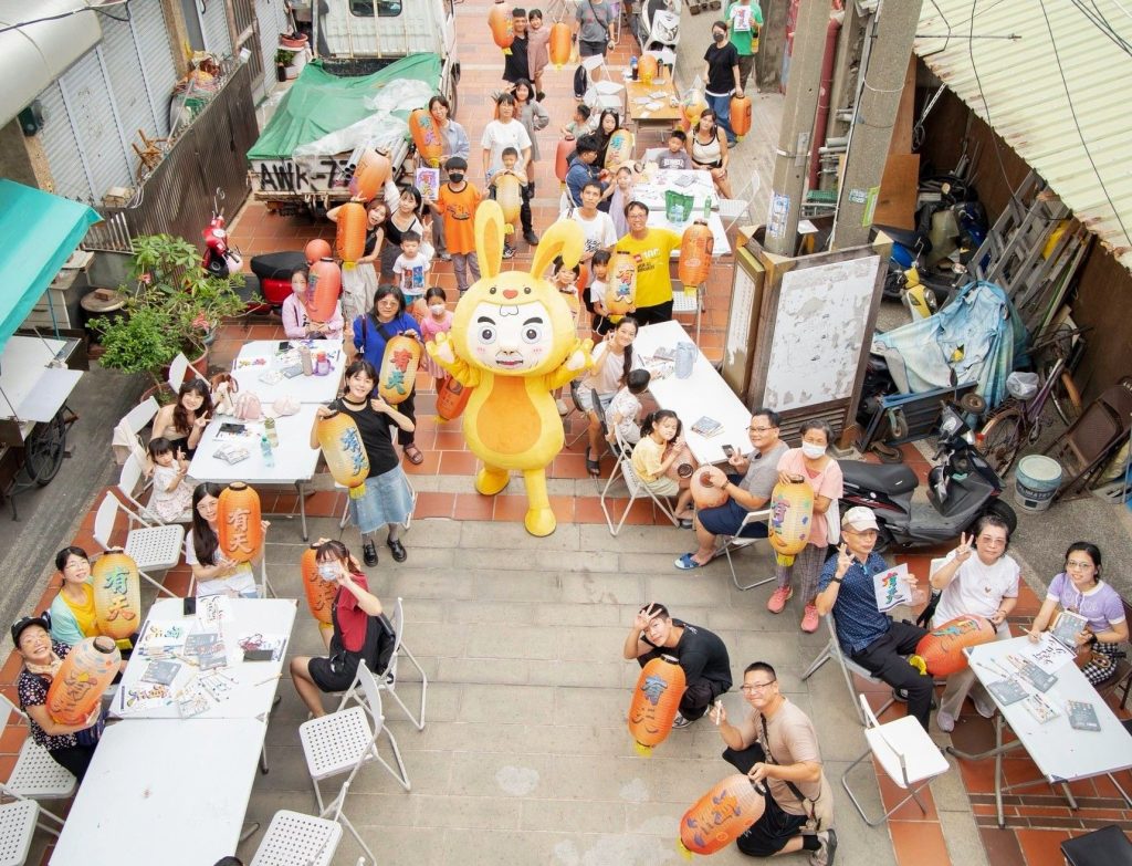 二0二五漫月美特展高掛於王爺廟巷口的作品《點亮‧有天》,由禹禹藝術工作室與王爺廟居民共創,除透過燈光訴說鹽水小鎮的時光故事之外,也成為這項藝術燈節連結在地資源的成功範例。