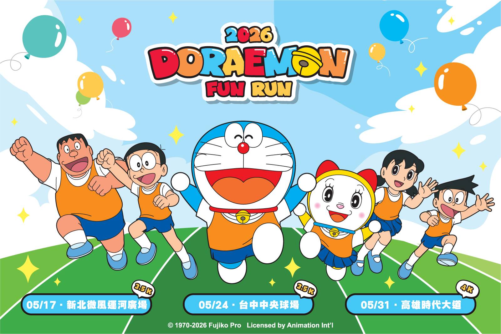 跟著哆啦A夢的腳步,跑向充滿笑容與能量的一天,「二0二六DORAEMON FUN RUN 哆啦A夢歡樂路跑」正式宣布登場,將陸續在新北、台中、高雄舉行,邀請大小朋友一起走出戶外,用輕快步伐享受運動的樂趣。