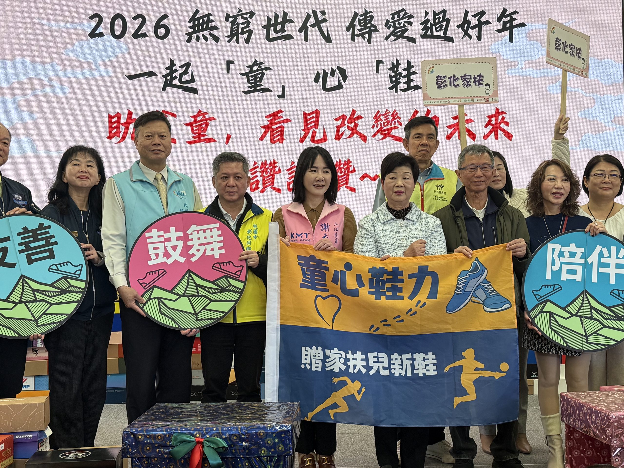 彰化家扶中心十日在員林服務處舉辦彰化家扶用愛扶家六十載,二0二六無窮世代寒冬送暖童心鞋力贈送家扶兒新鞋十一週年活動,由活動發起人羅金珠集結各方愛心資源,讓家扶兒能穿著自己喜歡的新鞋,在新春及開學之際能足夢踏實,積極面對新學期挑戰。