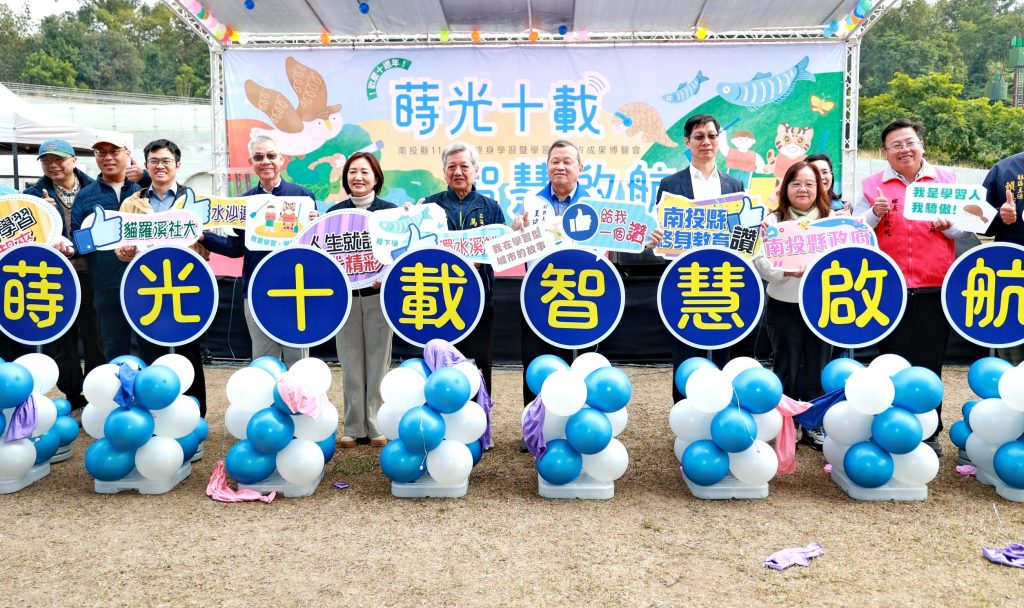 南投縣政府十日在日月潭向山行政暨遊客中心舉辦「一一四年度終身學習暨學習型城市成果博覽會」,值南投推動學習型城市十周年,以「蒔光十載.智慧啟航」為主題,透過表揚、展演、體驗等方式,進行湖畔學習派對,讓參與民眾在互動遊戲中認識終身學習成果,感受學習的美好與快樂。