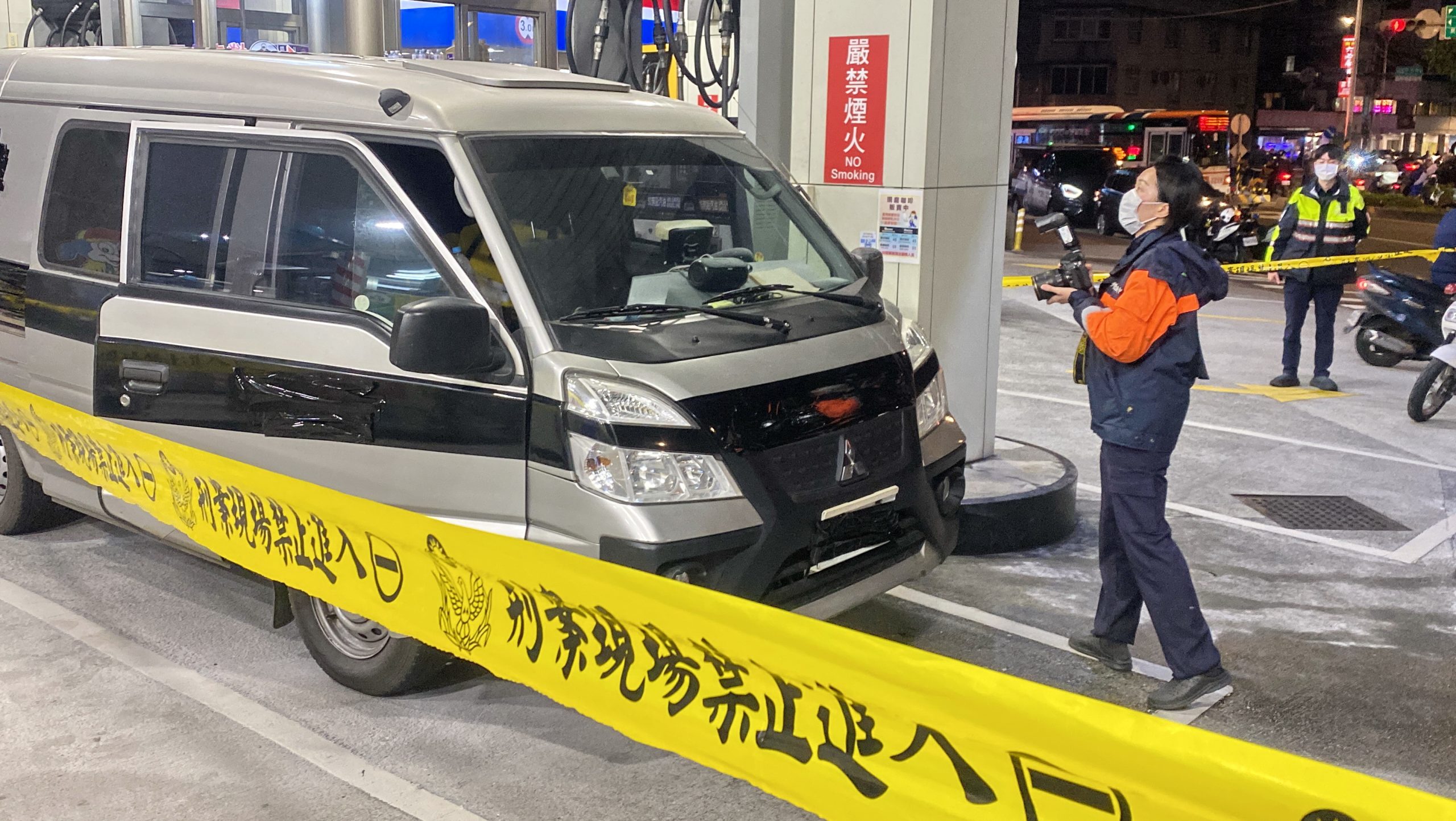 消防局當天傍晚獲報,一名男子在加油站內點火,消防人員到場時火勢已由加油站員工撲滅。員警到場未發現有刀械或危險物品。初步調查,引發火勢的男子點燃火勢後,撲向一旁正在加油的曾姓保全員,造成曾男也燒傷。