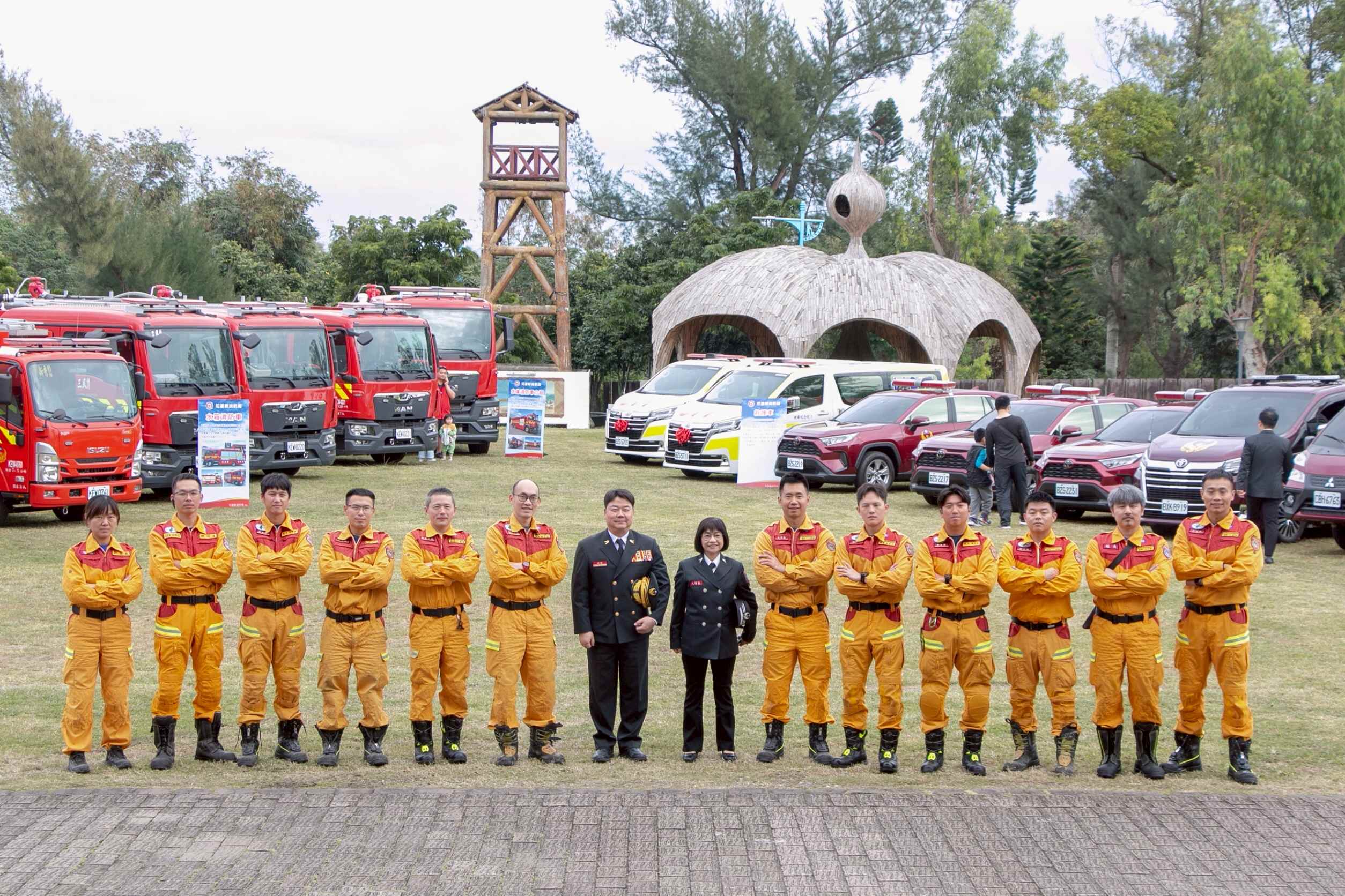 花蓮縣消防局表示,活動中舉行一一四年義消榮退人員、鳳凰獎人員及消防績優人員表揚頒獎典禮,藉以感謝、肯定全體打火兄弟姐妹們,長期以來無怨無悔守護鄉親安全的辛勞,場面溫馨。
