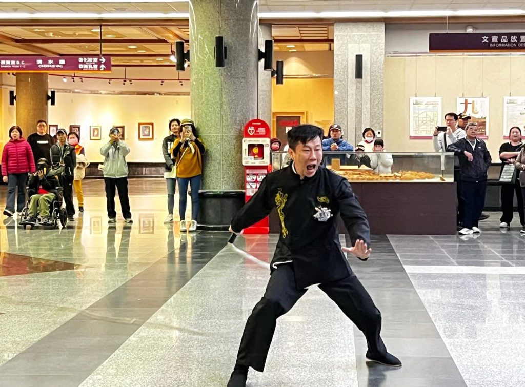 《紙獅啟舞.武藝承光──百年武術器械展》十日至二月一日在港區藝術中心展出,十日下午二時盛大開幕,現場除了展覽出《百年武術器械及紙糊手工獅頭》以外,展出者顏敏川精采演出象徵陰陽相生、變化靈動的「八卦飛龍鞭」及武術,更成為全場矚目焦點。