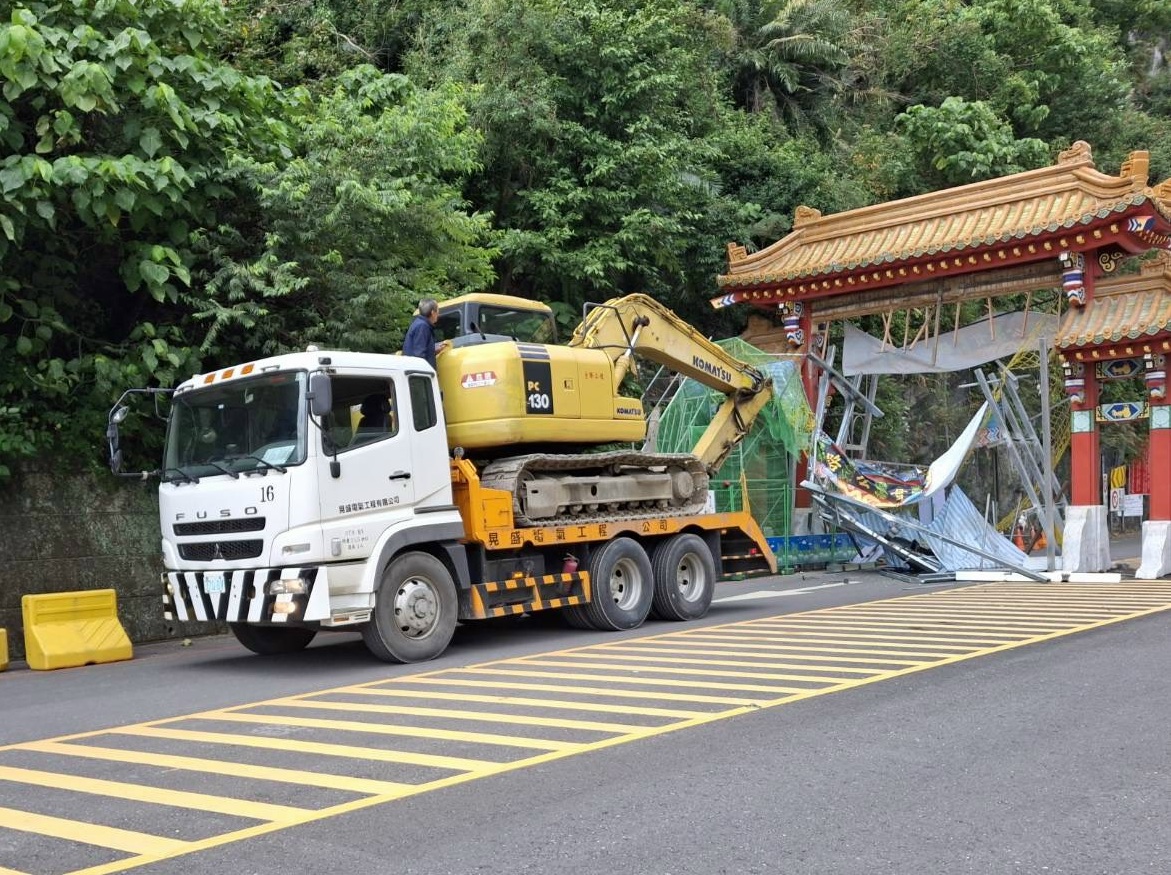 太管處十一日表示,撞擊發生後立即派員赴現場進行勘查與初步評估。經近距離勘驗,構台支架呈現向內拉扯變形,需拆除重整。牌樓主體結構根據初步目視判斷,梁柱、屋瓦等主體部分暫無發現新增損傷。