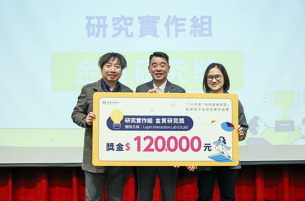 桃園市政府於一一五年一月十日在中原大學舉辦「為桃園做研究」大專校院學生創新點子及研究實作競賽頒獎典禮,鼓勵青年以研究與專業實作回應城市議題。中原大學於創新點子組奪得「創新金點子獎」三項、「創新銀點子獎」二項及多項創意獎,在研究實作組亦獲得五項「金質研究獎」與五項「潛力研究獎」,成果涵蓋交通安全、環境再生、智慧能源、永續設計與高齡照護等議題,展現中原師生跨域創新與實作能量。
