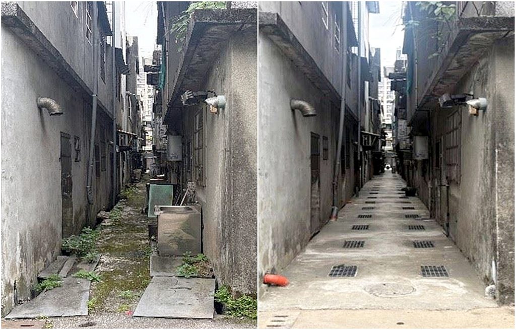桃市埔頂計畫區污水下水道系統提前達成第一階段用戶接管,前後對照圖。(水務局提供)
