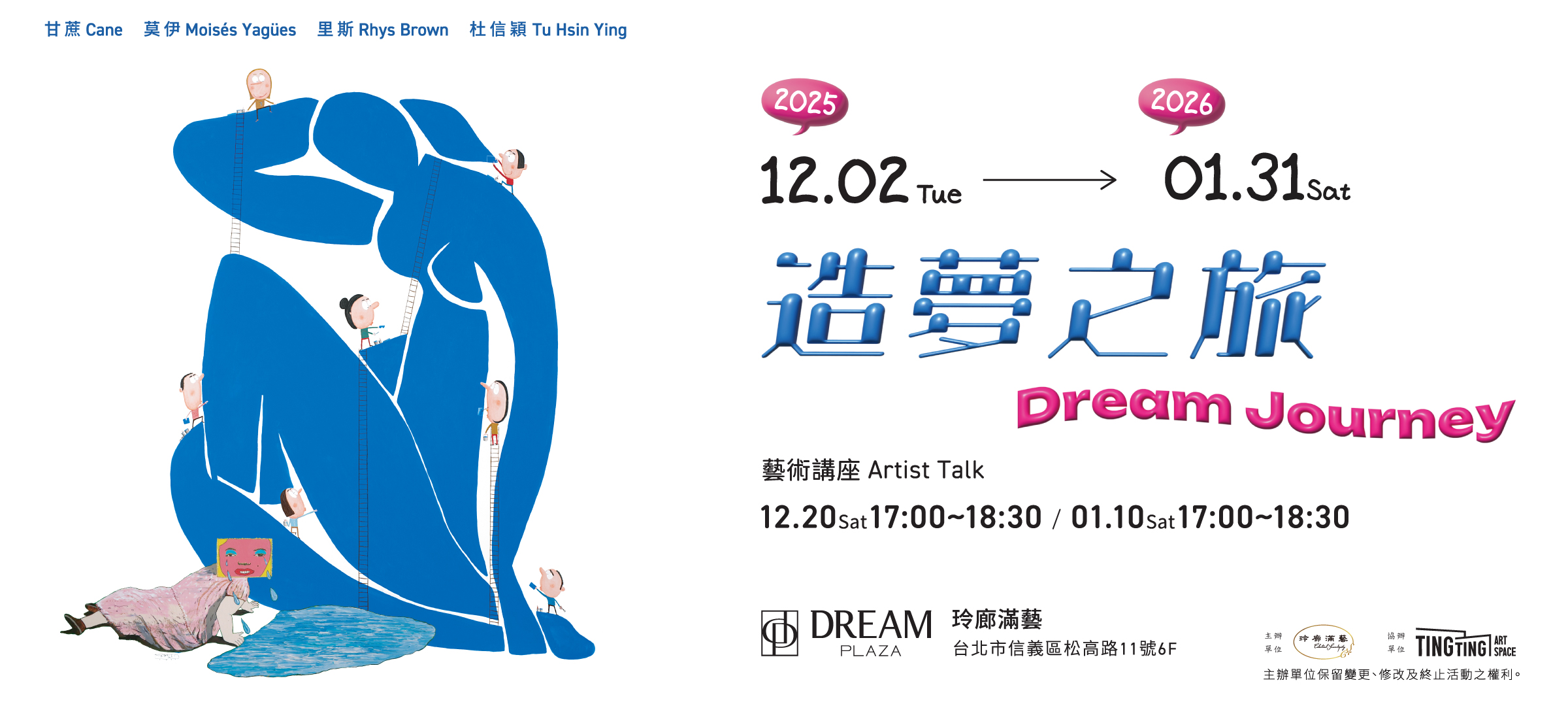誠摯邀請大家親自走進展覽現場,與作品面對面相遇。在畫面、音樂與對話之中,找回屬於自己的片刻夢境,也重新感受藝術貼近生活的方式。