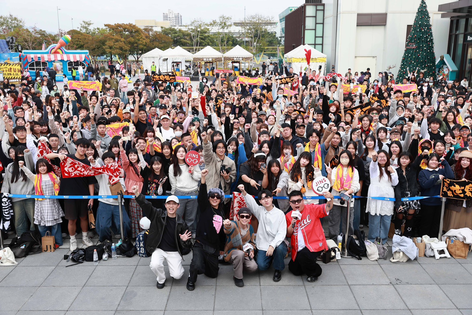除了溫馨服務,JINS更力邀紅遍大港、浪人祭等音樂盛事的人氣樂團「芒果醬 Mango Jump」,於 1/10 (六) 在岡山樂購廣場火熱開唱。成軍滿八年的芒果醬以「音樂祭能量怪物」之姿,在岡山街頭展現極具渲染力的舞台節奏,帶來《我不想工作 aka 我會中樂透》、《長灘島》、《我喜歡你》多首耳熟能詳的神曲,並且加碼安可演唱經典歌曲《小紫aka給我錢》,芒果醬發揮即興創作長才,把「JINS」唱進歌裡,讓現場歌迷在嘶吼與感動中找到共鳴。儘管活動當天氣溫較低,仍有大批死忠樂迷提前一天到場卡位,芒果醬直白熱血的樂風宛如一劑勇氣藥引,與現場民眾一同在新年之初重新燃起面對生活的熱情。