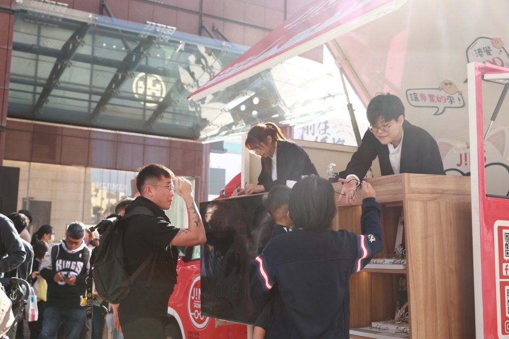 隨著捷運紅線RK1岡山車站通車帶動北高雄生活圈, JINS鎖定岡山發展潛力,首度將指標性的「JINS GO 小紅胖卡車」開進岡山樂購廣場,為在地居民與科技新貴帶來便利的行動服務。現場「打卡送墨鏡及堯平布朗尼」、「眼部 SPA 體驗」,吸引大批剛用完餐的民眾排隊,把現場擠得水洩不通,墨鏡更是在開場後不到五分鐘內就被兌換一空,現場民眾紛紛大讚「這是2026 新年最貼心的禮物!」,展現 JINS深入在地、照護民眾視野的品牌精神。