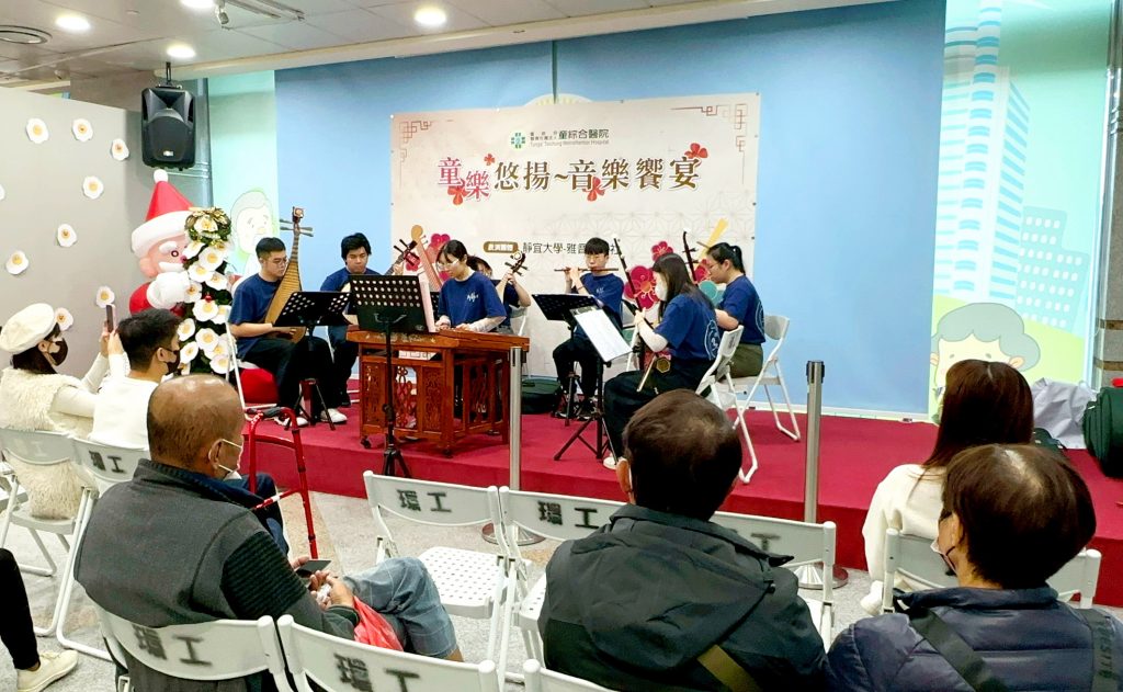 這次活動分別邀請了靜宜大學琴聲飛揚吉他社、靜宜大學雅音國樂團到醫院進行演出,將長久練習的成果展現在大眾面前,藉由悠揚的樂聲讓到院病患與民眾都能感受到身心靈的放鬆與紓壓。吉他社共有12名社團成員到場表演,不僅彈奏了5首左右的曲目,也就歌曲編排了一小段舞蹈,近距離邀請現場聆聽民眾一同隨音樂擺動,讓民眾感受到年輕活力的氛圍。