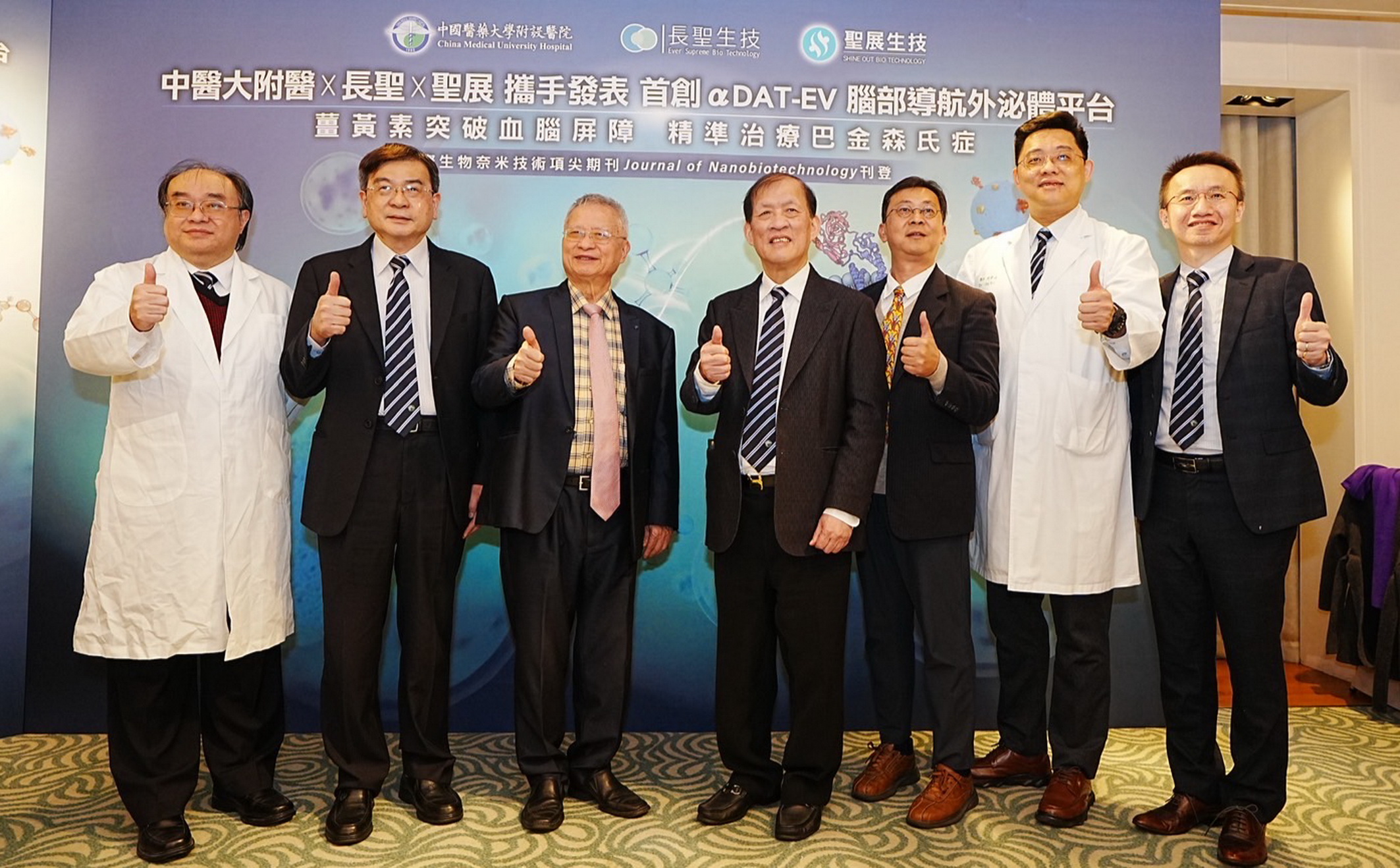 周德陽表示,約98%的藥物因無法有效穿透血腦屏障,導致對巴金森氏症治療效果受限,成為神經醫學發展的重大瓶頸,中醫大附醫將「外泌體藥物載體技術」應用於實體腫瘤後,再延伸至中樞神經系統(CNS)領域,並成功成功開發出「αDAT-EV 腦部導航外泌體平台」。