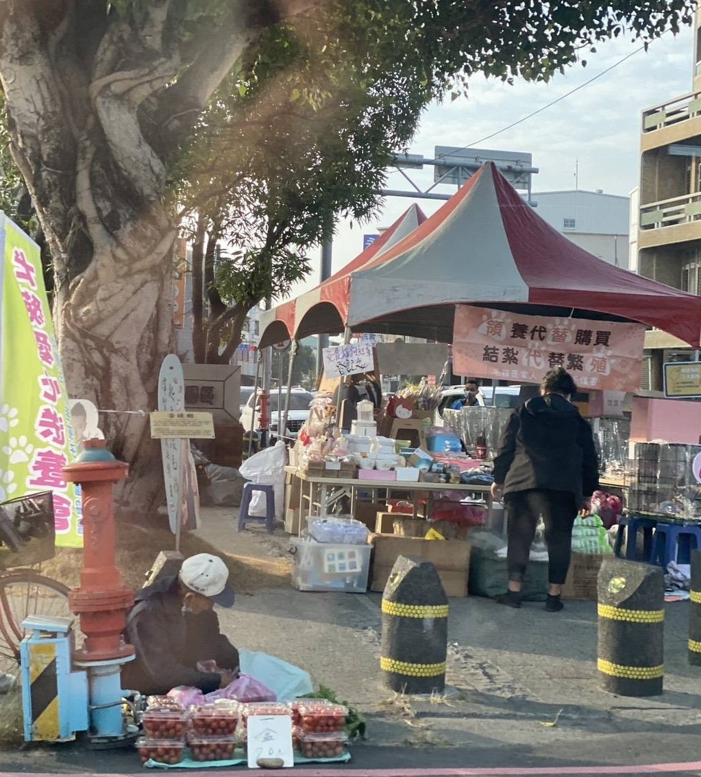 某民間團體上週六、日在新化武德殿舉辦流浪動物認養活動,占用人行道遭民眾檢舉。(民眾提供)
