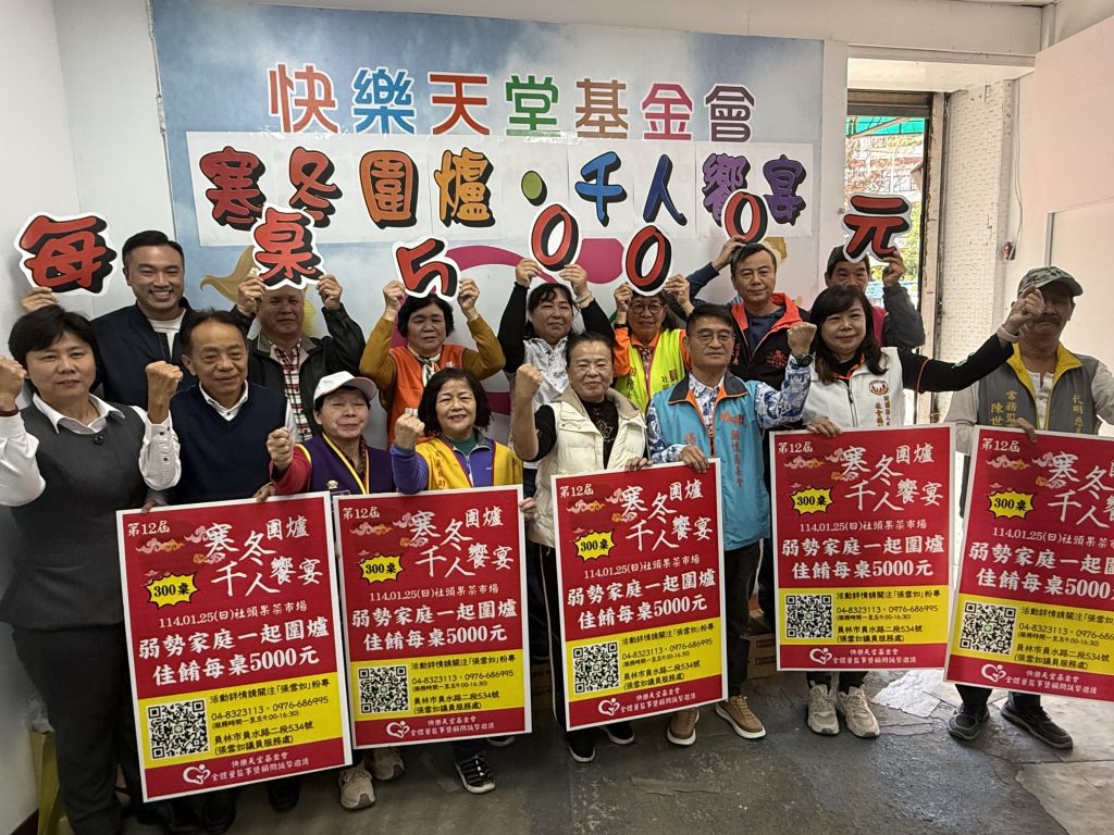由快樂天堂基金會結合多個慈善團體辦理的寒冬圍爐千人饗宴活動,今年已邁入第十二個年頭,基金會董事長張雪如說,十一年來已服務超過二萬個以上弱勢者,今年將在二十五日假社頭果菜市場舉辦,由於報名相當踴躍,預計席開三百桌,約有三千人參與,張雪如期盼各界善心人士共襄盛舉,一起為弱勢族群送暖。