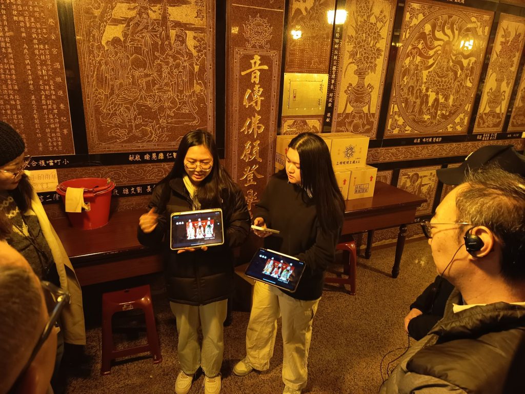 走讀路線從海港大樓出發,途經海洋廣場、城隍廟、慶安宮、初見咖啡,最終於至善大樓頂樓進行星空觀測。透過天文專家歐柏昇與曾美茵的指導,海大天文社將基隆文史脈絡與星空系統進行跨領域轉譯。天文社幹部陳宥瑄同學與王以真同學於慶安宮現場分別介紹太歲、北斗、南斗、文昌與魁星等神祇與天文對應,讓參與者看見廟宇文化中存在的星象系統與宇宙觀,也展現出學子在文化詮釋、知識轉譯與導覽能力上的成長。