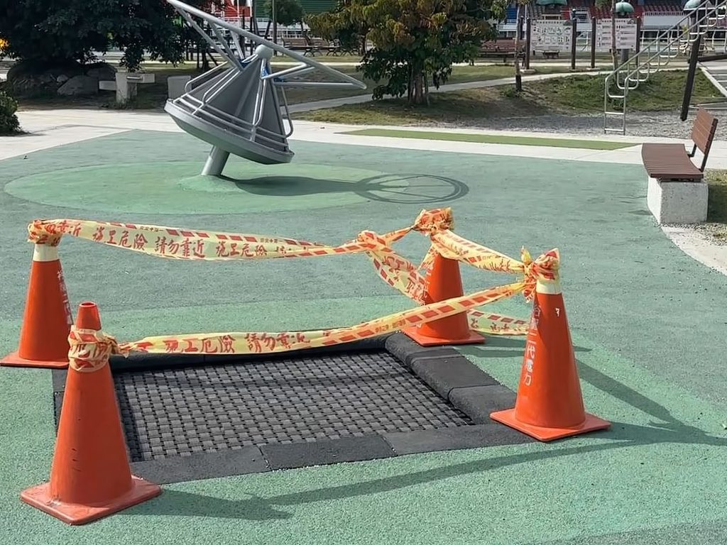 縣府經洽原設計及施工單位研議後,考量該類遊具長期處在高使用率與高承載狀態,即便汰舊換新,仍難以確保使用年限與品質穩定性,短期內將先參考外縣市相關作法,在既有結構中增加人工材質防護軟墊補強。