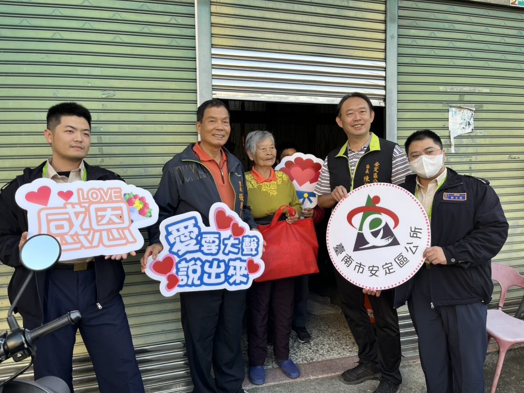 台南市安定區公所關懷獨居長者十四日由區長陳仁偉帶領公所社會課、民政課人員,並偕同地方里長,前往區內獨居老人家中進行關懷訪視,真心在寒冬中送上溫暖的祝福與實質關懷。