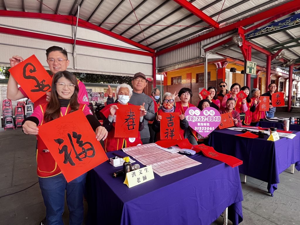 為讓獨居長輩在春節期間享用熱騰騰的年菜,華山基金會下營天使站十四日舉辦「百歲人瑞揮毫義賣春聯助孤老好過年」公益活動,下營區長李宗翰也出席支持愛心年菜募集行動。