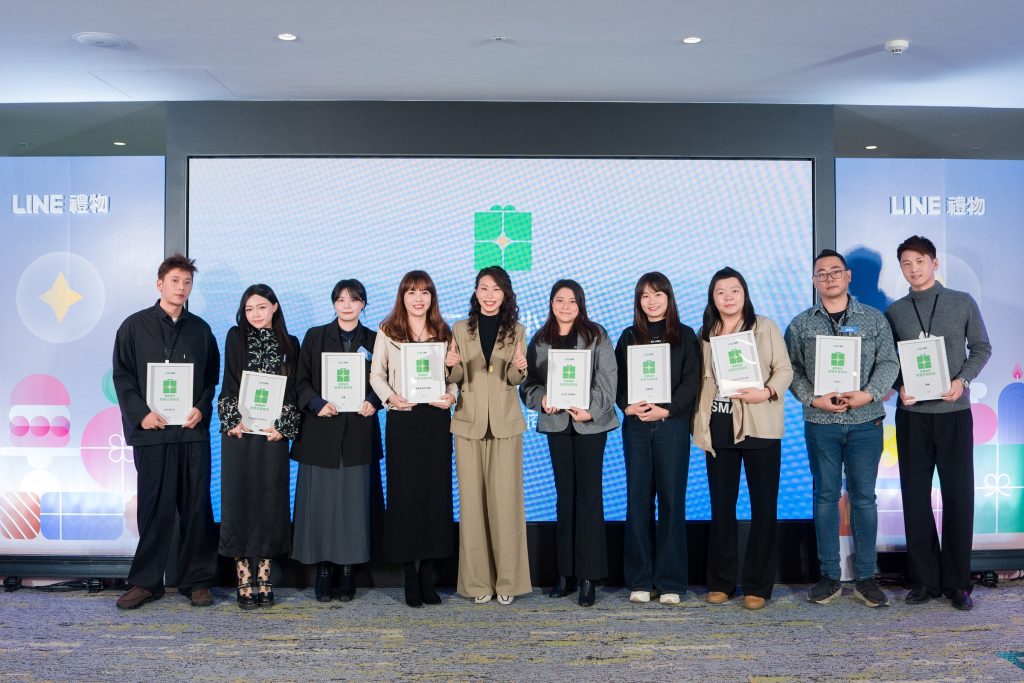 本次活動亦舉行「星賞點評年會」頒獎儀式,表揚於 LINE 禮物平台上展現穩健成長與高度潛力的優秀商家夥伴。其中,「榮譽百萬商家」獎項,表揚單月平均營業額達百萬元量級,並於送禮場景中持續創造亮眼表現的品牌,包括 傳遞幸福法式甜點、承繼、SHARECO、JOYCE 巧克力工房、氺の尼 泥研製所、FREED、Muzigae Mansion、奧瑪烘焙、瀾島等多個品牌。