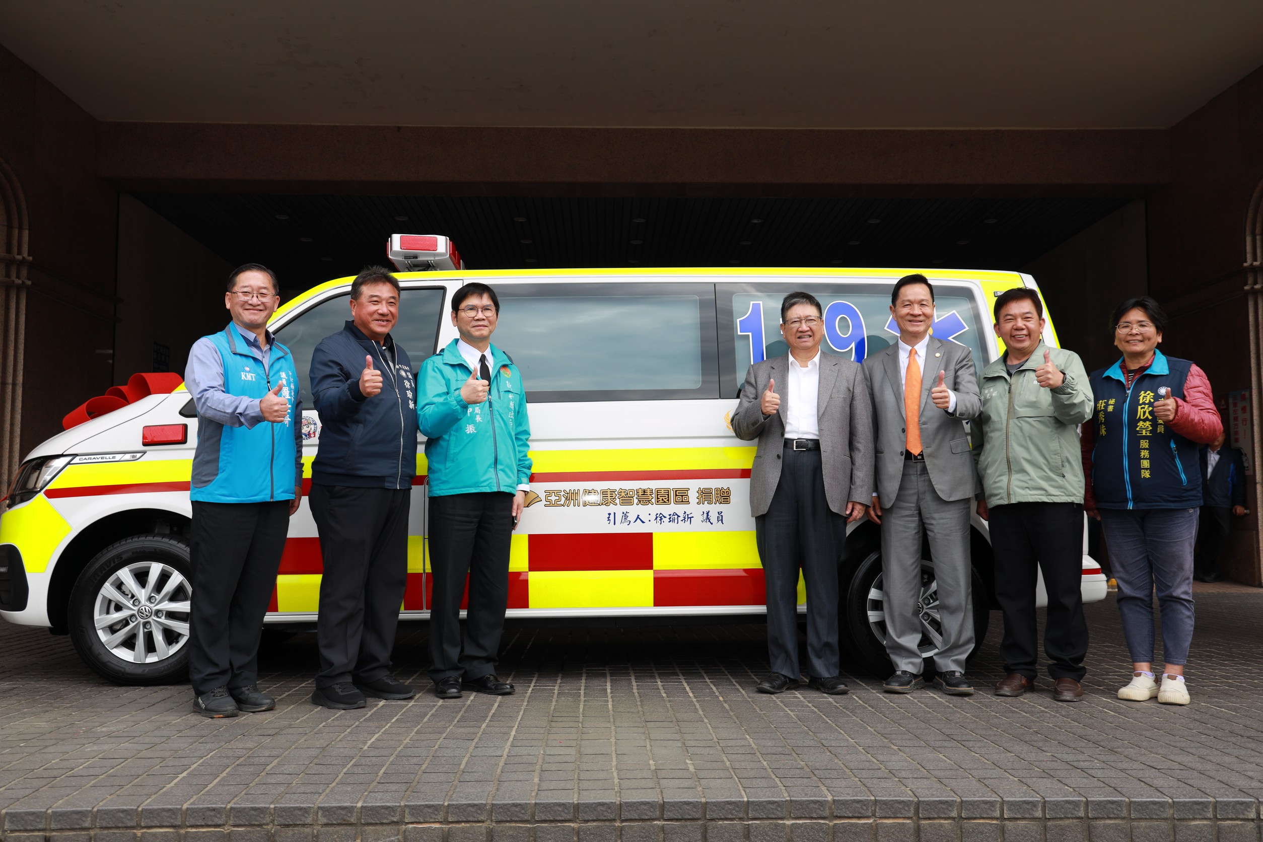 亞洲健康城股十五日捐贈新竹縣政府消防局一輛總價近三百七十萬元之救護車,配置於關西消防分隊,由縣長楊文科代表接受,協助提升在地緊急醫療救護量能。