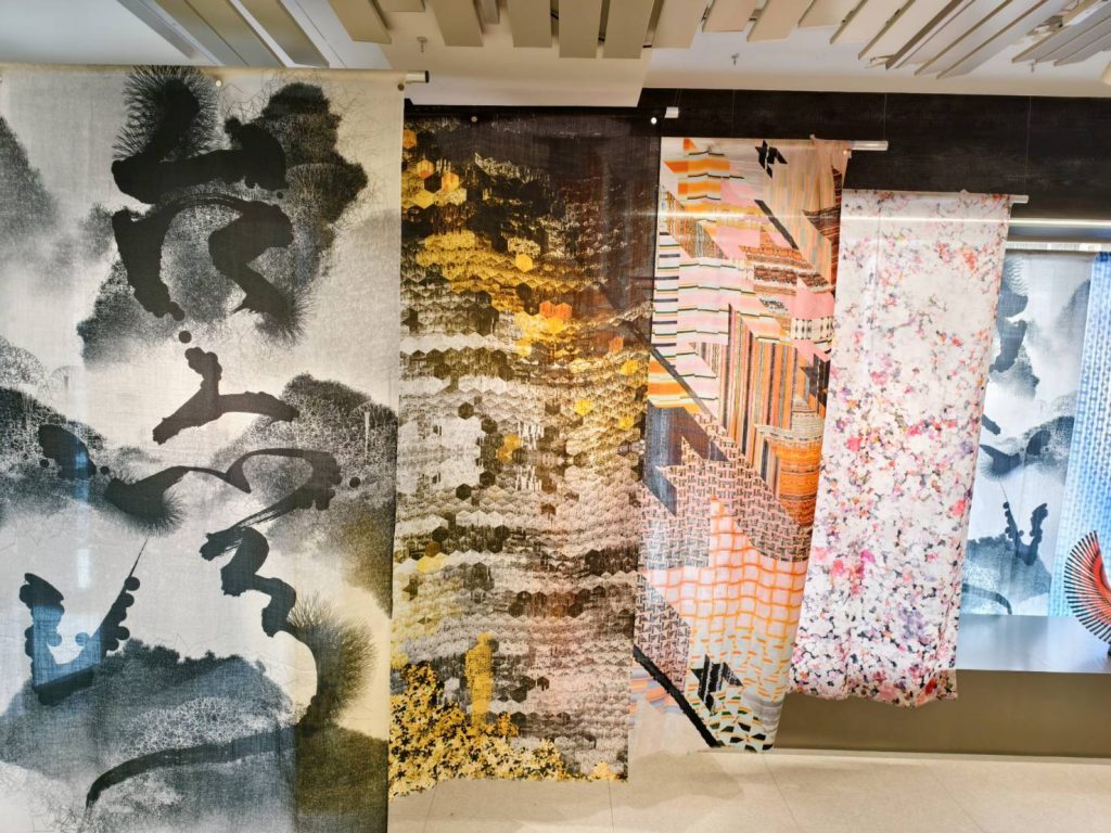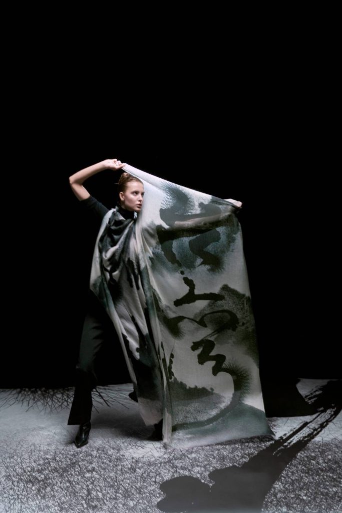 YEN TING CHO Studio活動現場亦同步公開全新〈島嶼寓言〉精梳羊毛圍巾系列,將公共藝術轉譯為可被穿戴、攜帶的日常物件,延續島嶼故事。其中最吸睛的是與書法藝術家 董陽孜老師合作的共創圍巾〈島語〉,以「台灣」為題,結合書法筆墨與數位生成的山形與島嶼結構,將傳統文化底蘊導入當代視覺語彙,詮釋台灣獨有的韌性與生命力,展現跨世代、跨媒介的創作對話。