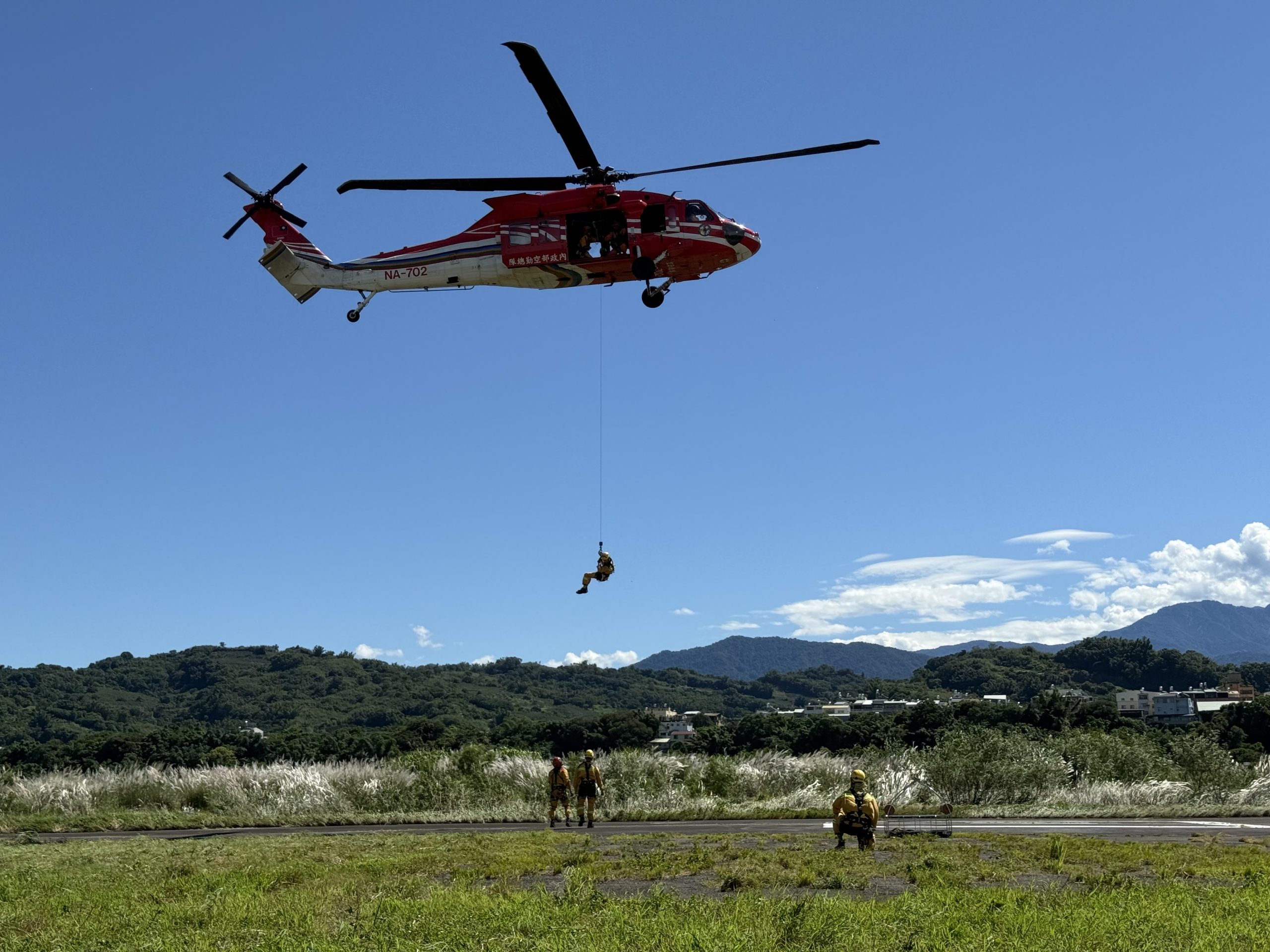 提升防救災效率及量能,辦理防火演練外,與空中勤務總隊聯合辦理十一場直升機水袋及人員吊掛訓練,建構地空一體的立體救災網絡。