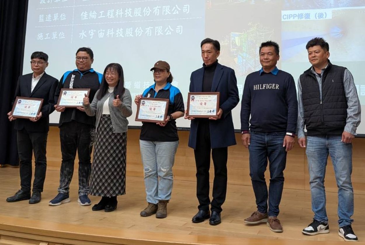 中華民國地下管道技術協會主辦的一一四年「優良地下管道工程獎」得獎名單出爐,南市水利局提報「一一三年度臺南市汙水下水道管線檢視及更新修繕工程」及「台南市虎尾寮汙水下水道系統I幹管汙水揚水站工程」,分別榮獲優等與佳作。南市水利團隊十六日北上領獎,市長黃偉哲表達肯定。